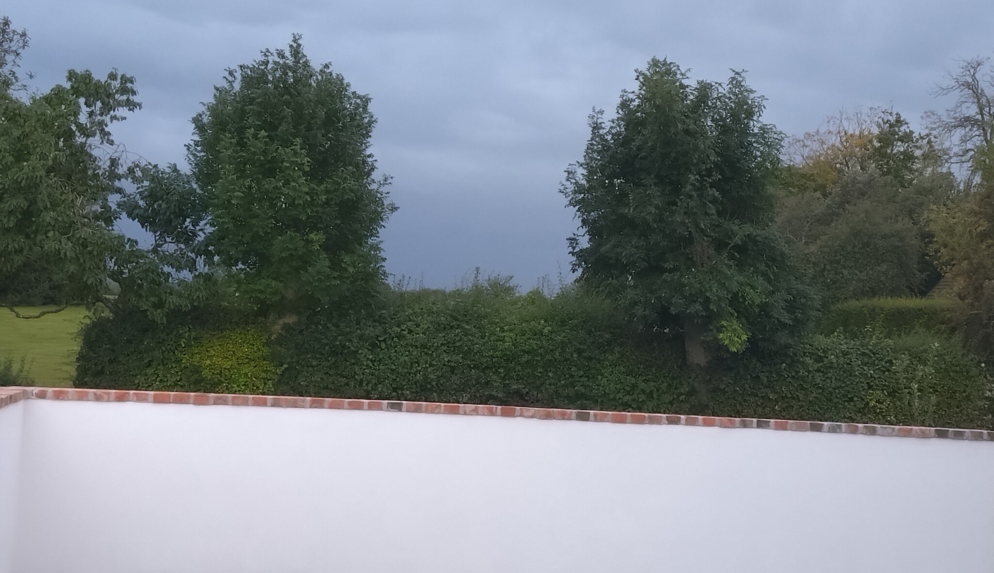 Teglet ovanpå skyddar heller inte muren tillräckligt bra från nederbörd/fukt.