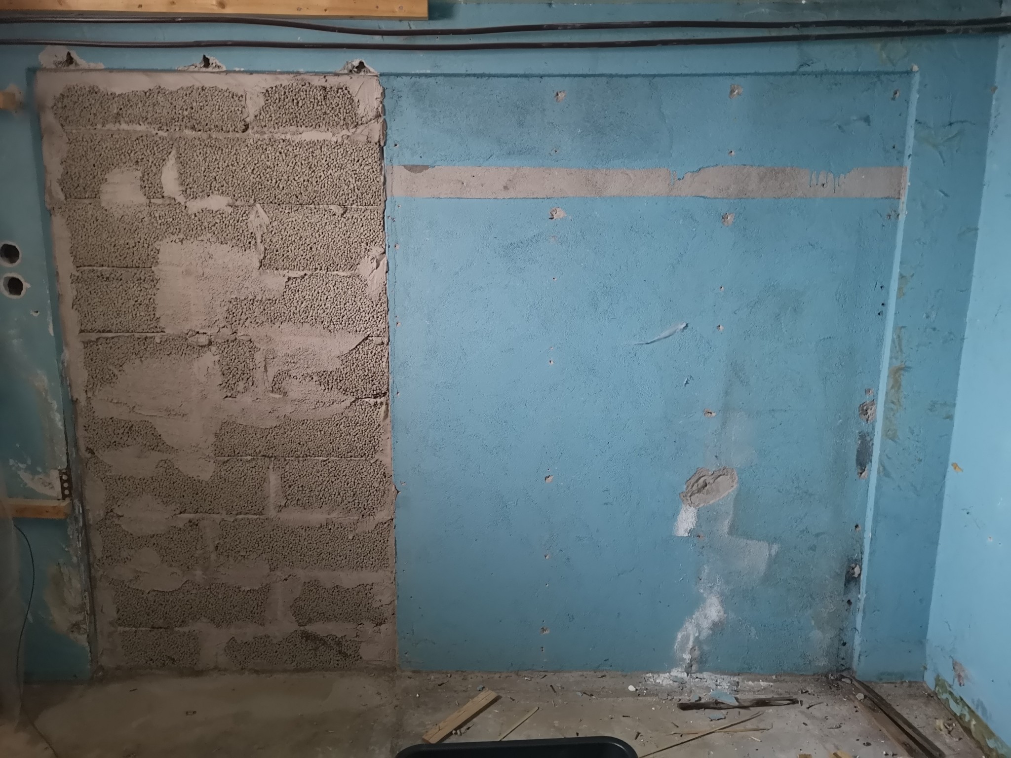 Har en vägg i källaren som det har varit en garageport en gång i tiden.