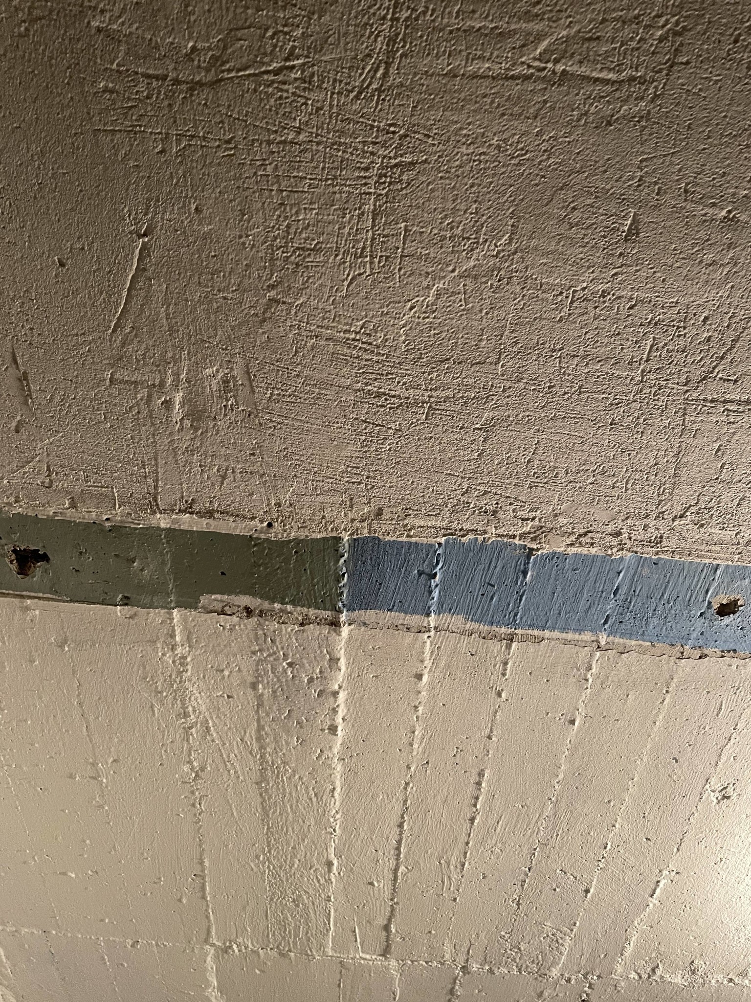 Vi har rivit vägg i källaren där rummen haft olika struktur i taket. Det gamla har bara "planktak" från gjutningen medans det nya har någon form av putsning/spackling.
