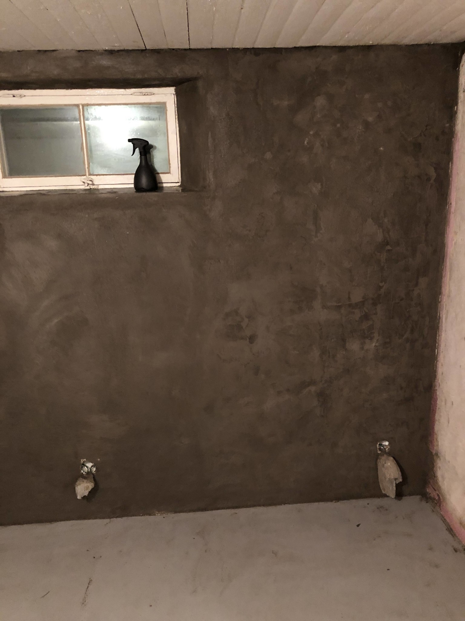 Jag tunnputsade den ena väggen idag. Som sagt fick jag inte bort all färg tyvärr, vattnade på väggen först sedan på med lagningsbruket/putsen. Bara hoppas det håller sig, vart tyvärr inte perfekt på högra sidan där jag började, väntade för länge innan jag filtade/slätade till ytan. Tog ca 4tim för mig att göra en vägg, men nån gång ska vara den första nu skulle man hålla det fuktigt i 72tim så får gå över den med en blomspruta några gånger per dag.
