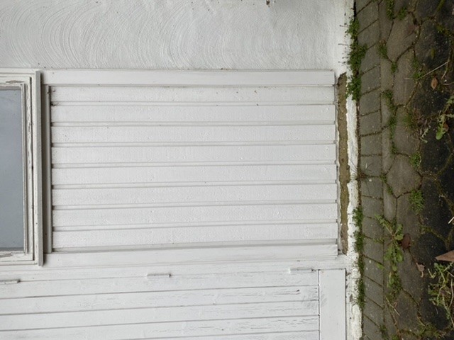 För några år sedan så tog vi bort en gammal sopdörr i garaget och stängde igen enligt bild. Nu har putsen släppt längst ner mot backen. Finns det något alternativ att montera längst ner eller är det bästa att lägga på nu puts och sen måla?