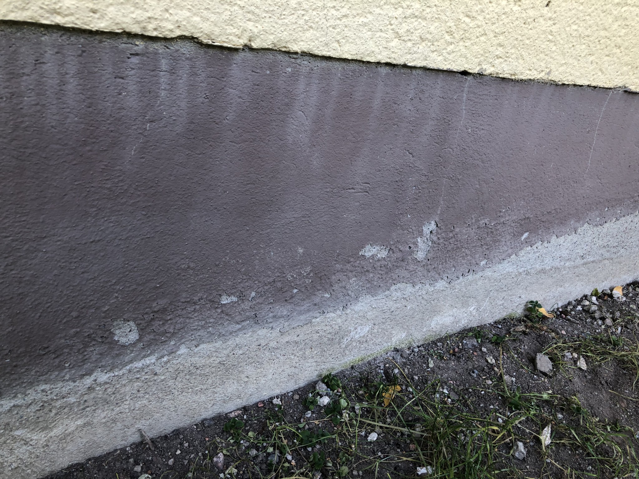 Färgen på den stänkputsade ytan avviker något och för tankarna till silikatfärg