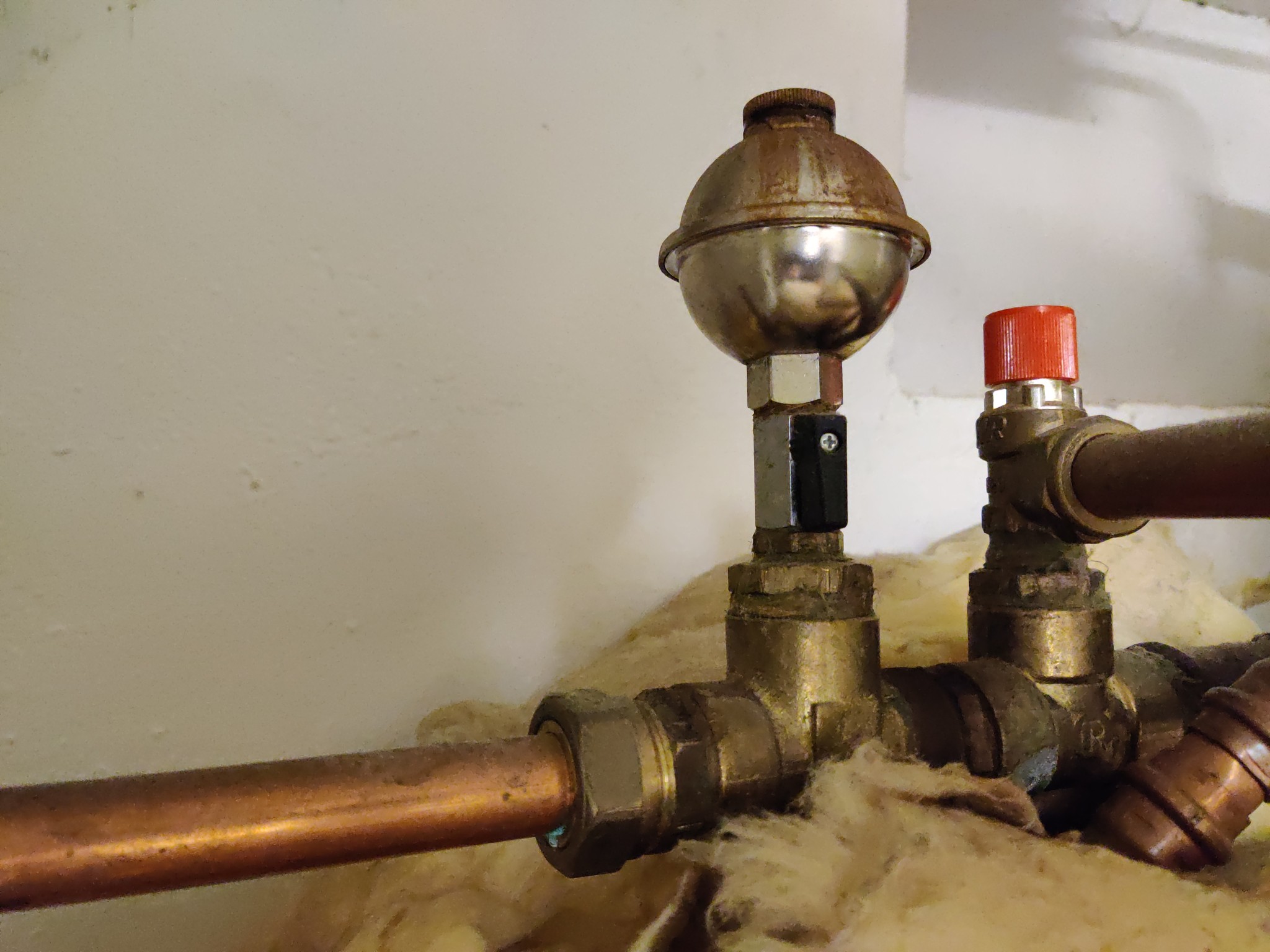 Ska den runda ventilen vara öppen? När jag eldar "hårt" pyser det ur ventilen o vatten kommer ut. Snett ner till vänster sitter ett slutet expansionskärl. Påverkar det trycket i exp.kärlet ?