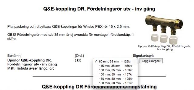 Tack för hjälpen... jag känner tyvärr ingen som har Konto hos Ahlsells... men jag har stött på ett nytt problem, jag skall ha en fördelare med tre fördelningar(som på bilden) förstår av texten att det är längd och c/c-mått som skiljer, men har alla 3st fördelningar?? vilken brukar man använda?? ringde Sigro och kollade, men de visste inte heller...