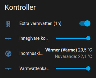 Borde ju också variera lite dag för dag om man vridit på varmvatten vid dusch och den andra pumpen går o kör vatten igenom värmeväxlaren drar lite el.P perstr skrev:Jag undrade mest hur Qvantum ”bokför” förbrukningen som pannans övriga delar har? Elektroniken, fläkten, cirk. pumpen etc. Menar att jag tycker mig se i husets mätning att pannan förbrukar mer el än summan av kompressor och additional-värdena.