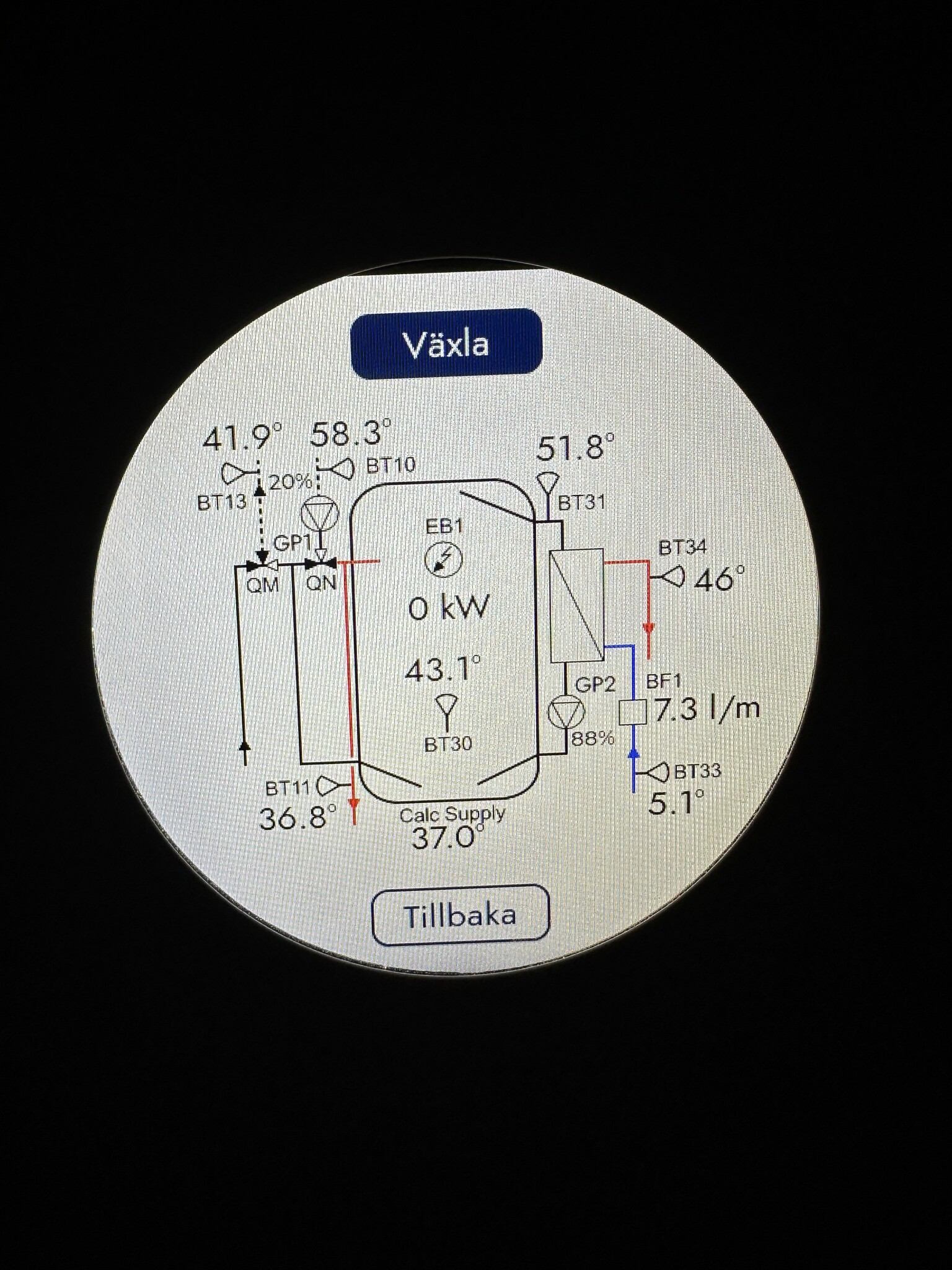 Jo kanske så. Nu borde nog Qvantum'en vara intresserad av returen då det bör påverka cirkulationspumpens hastighet. Är det för stort delta så bör pumpen öka hastigheten för att minska deltat. Är skillnaden "obefintlig" bör den sänka hastigheten för att inte förbruka energi i onödan.J jonaserik skrev: