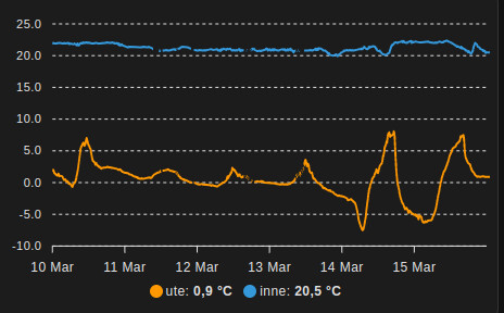 Tycket innetemp håller sig helt ok. Har "target temp" satt till 20.5grader och ligger enligt grafen hyfsat stabilt runt 21.5grader.
