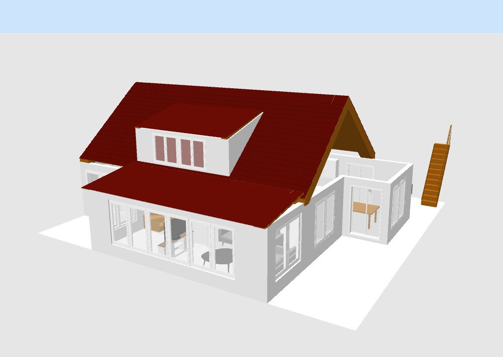 Tror dock att du ska låta tillbyggnaden börja först en bit in i väggen så originalhusets form bevaras. Huset kommer se bättre ut utifrån om den börjar kanske 30-40 cm efter hörnet.
