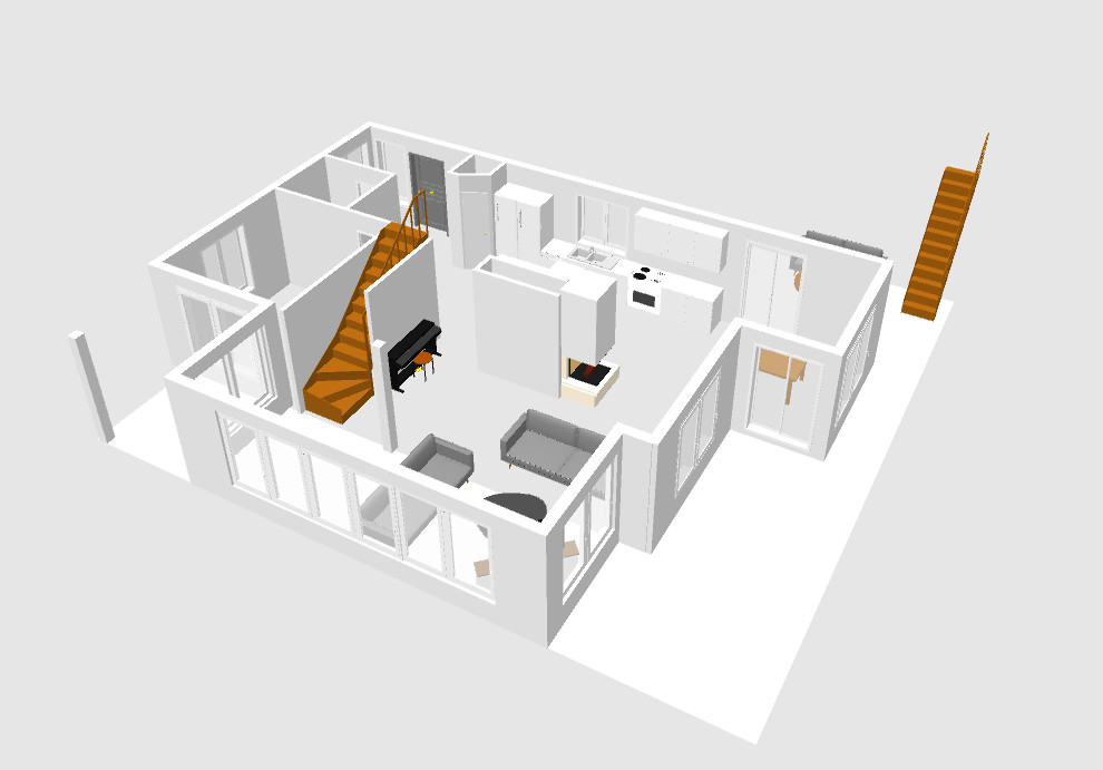 Ert vardagsrum ser ju onekligen trångt ut. Hade jag varit du hade jag nog funderat på att dra ut tillbyggnaden på långsidan i din skiss (nästan) hela vägen ut till husets hörn, dvs ytterligare 2,5 meter. Tror huset kommer upplevas som relativt luftigt då. Utbyggnad av kök hade jag lagt som prio 2, och först efter att ni bott i huset med utbyggt vardagsrum, kanske räcker det med den första tillbyggnaden?