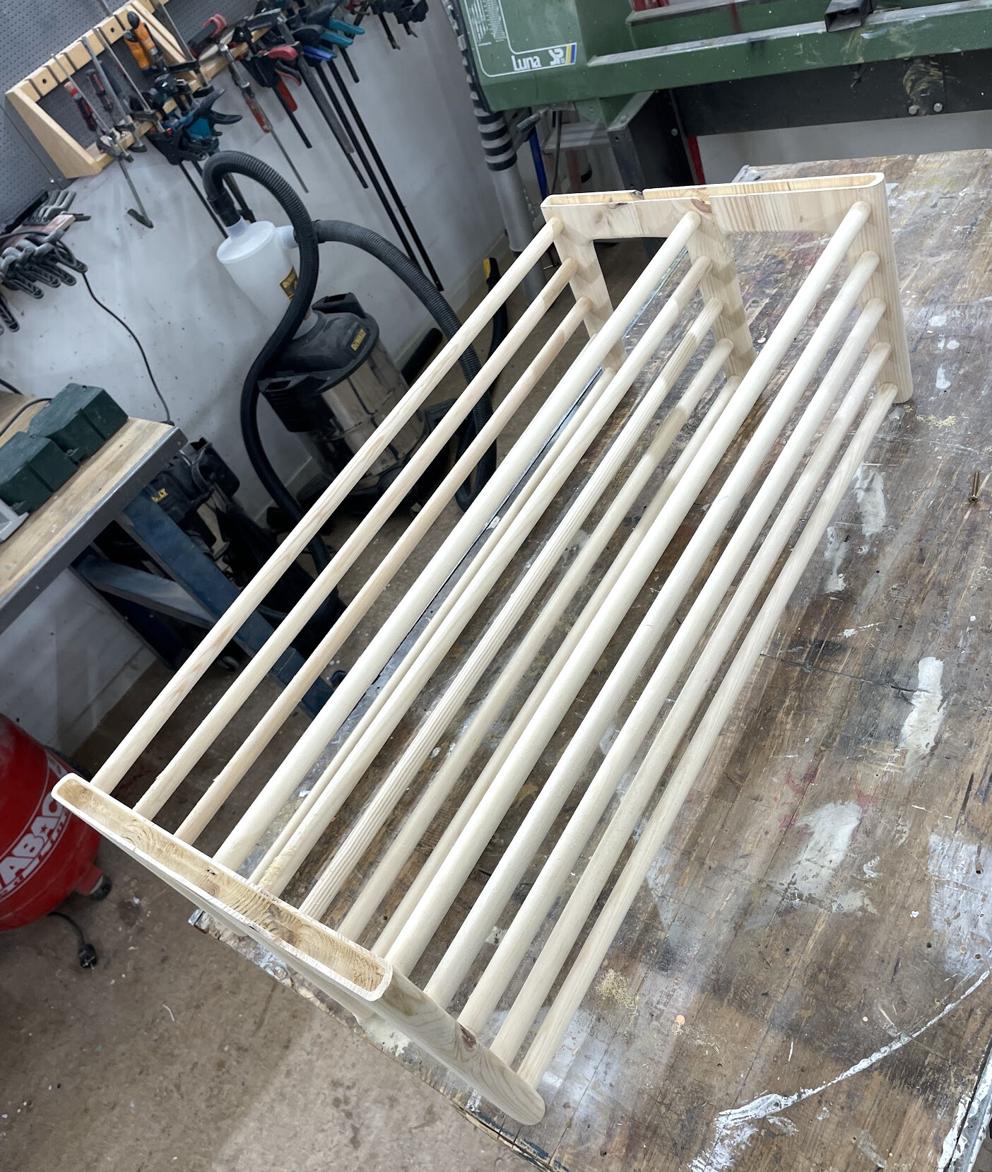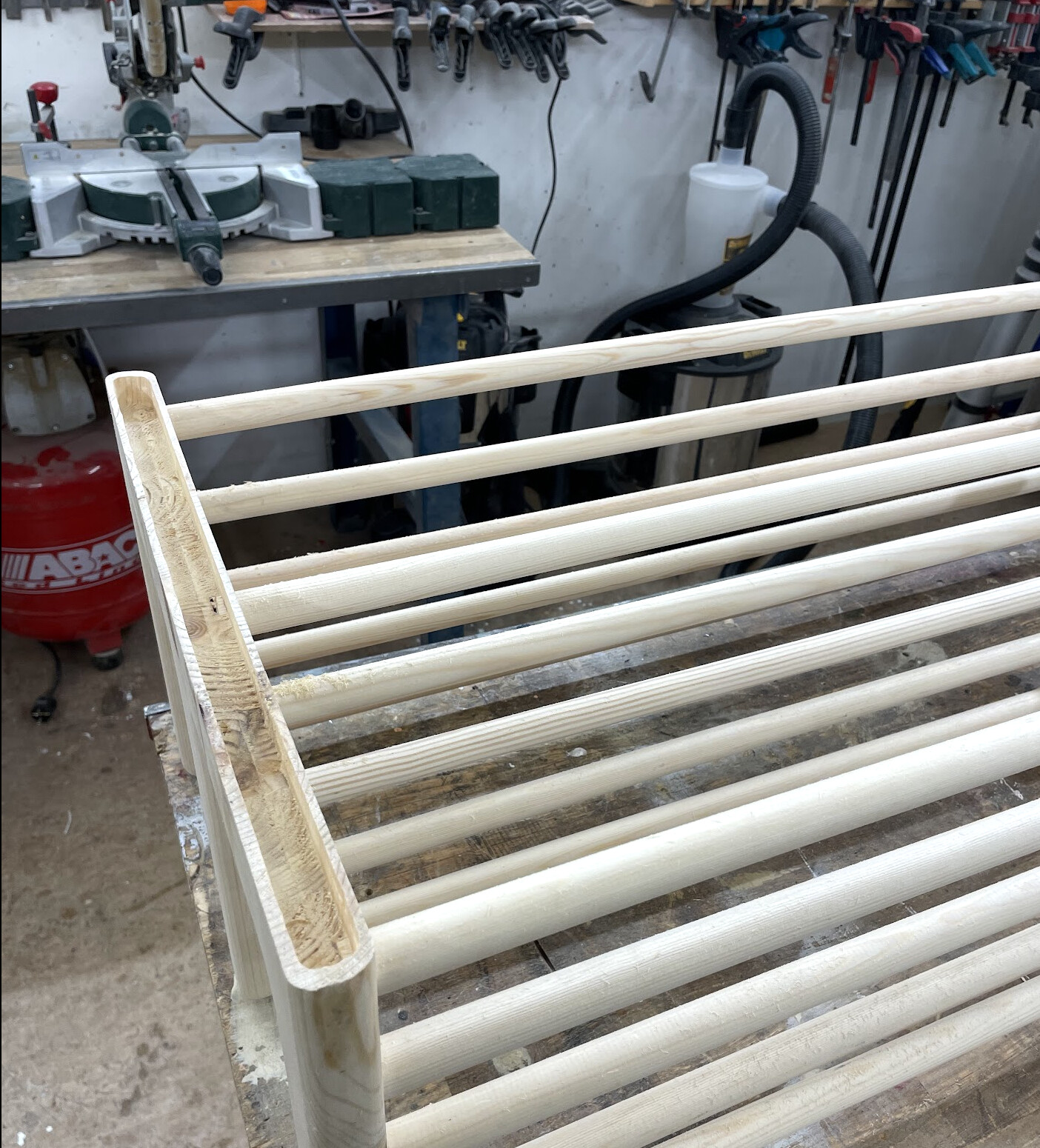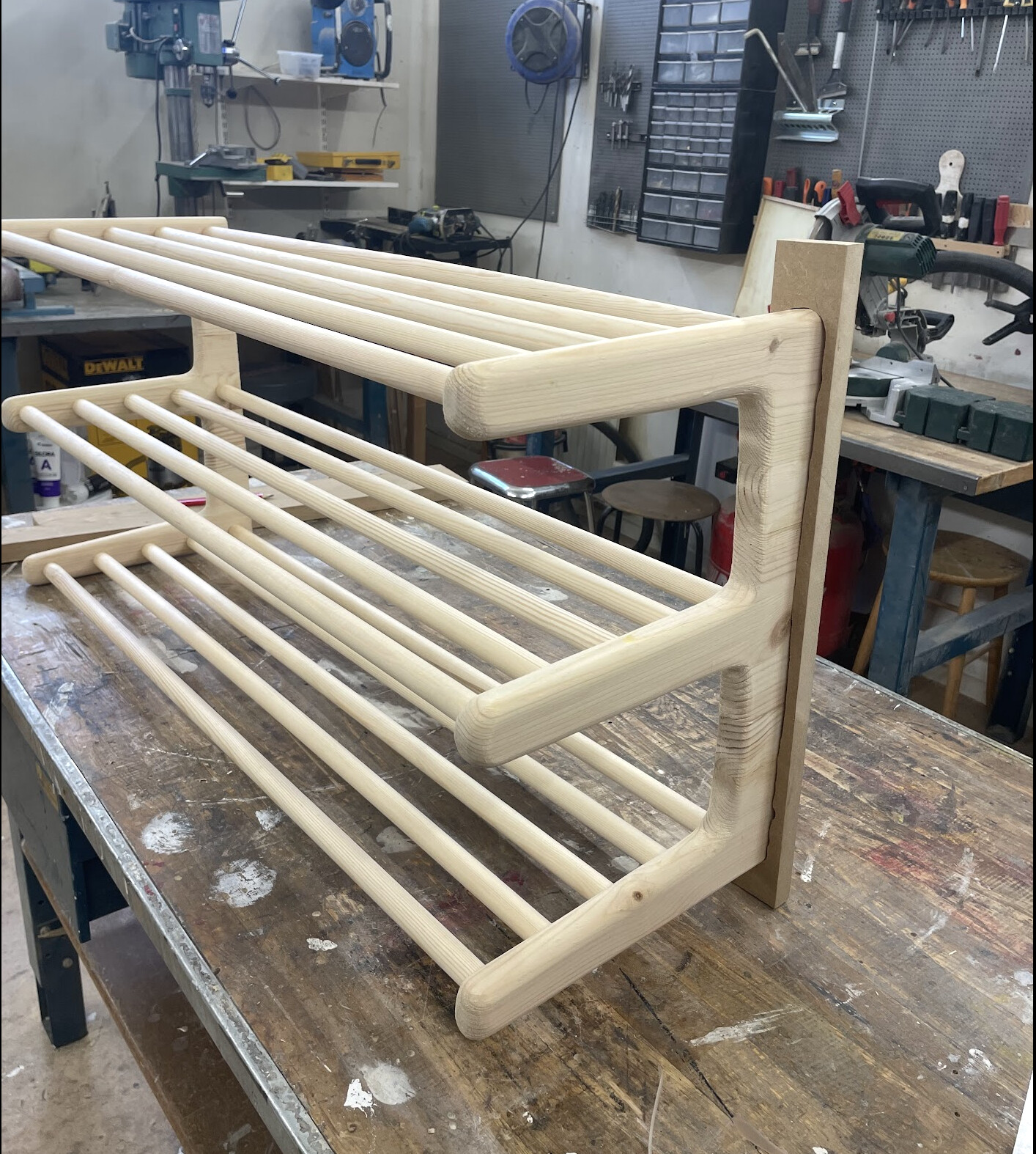 Jag har youtubat överhandsfräs imorse och måste säga, vilket jäkla verktyg! Revolutionerande. Även för att göra rundade kanter vilket jag lekte runt lite med på spillvirke när jag tränade. På skohyllan jag håller på med har jag kört old school hyvel, rasp och slippapper. Nästa gång blir det mer fräs.