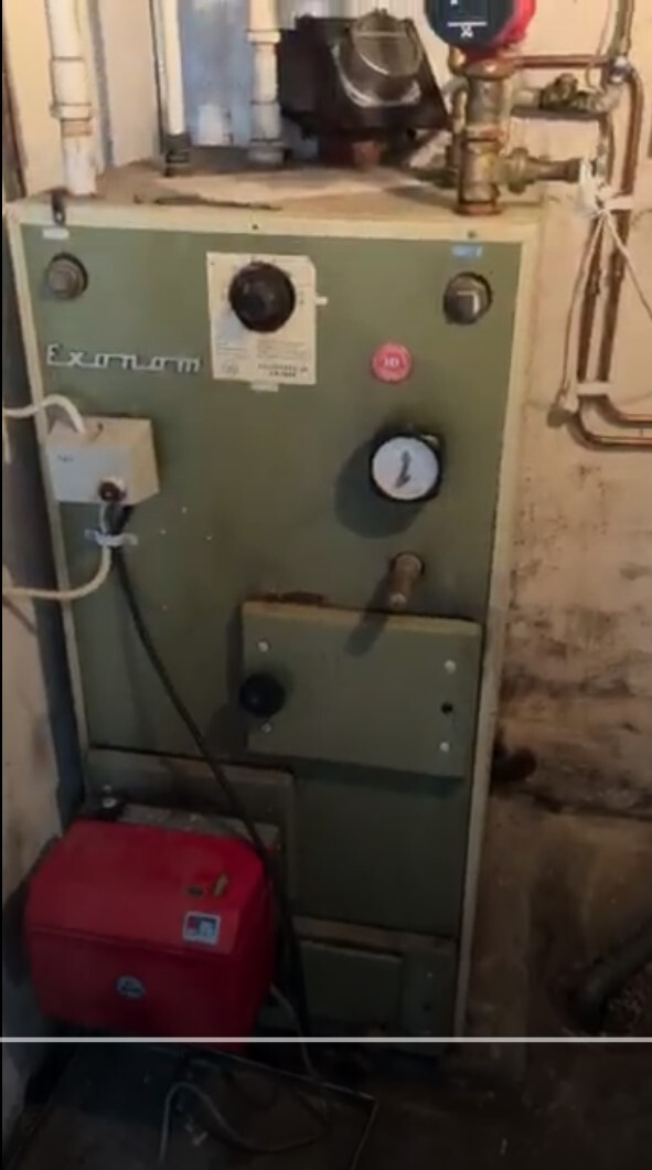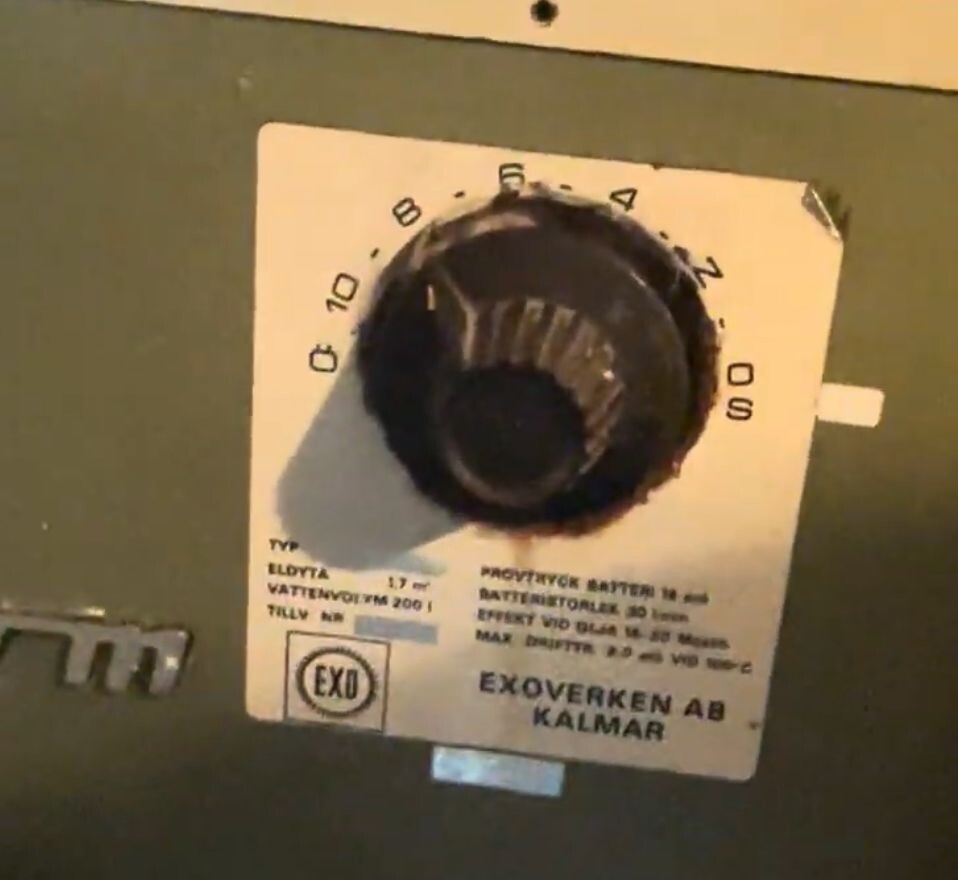 - En äldre, avställd Exonom oljepanna (200L vattenvolym, 17kW nominell effekt / 30kW max). Den har inte använts på flera år och var då endast i drift sporadiskt.