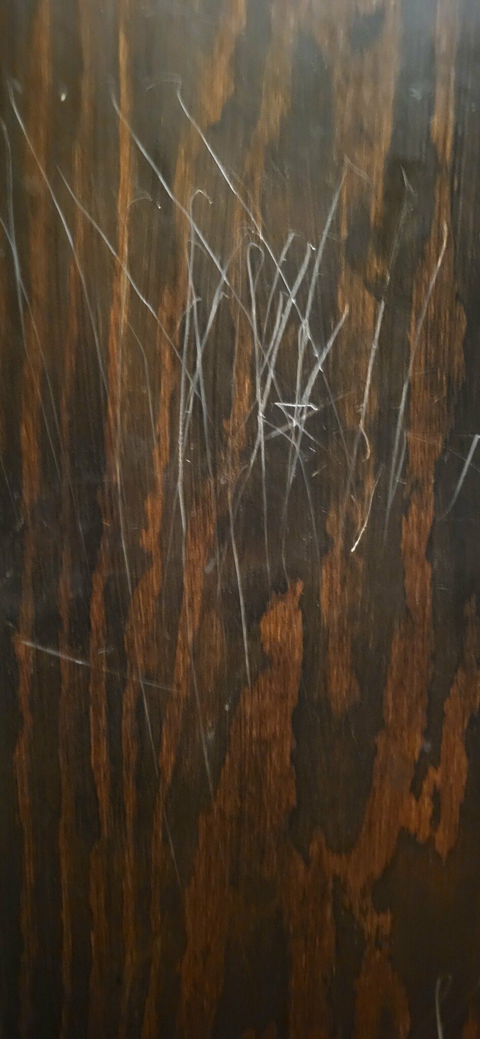 Beroende på hur osynligt det behöver bli så kan du ju börja med att lasera över det. Räcker det för dig och övriga i familjen så stanna där. Alternativt slipa lokalt och lasera om.