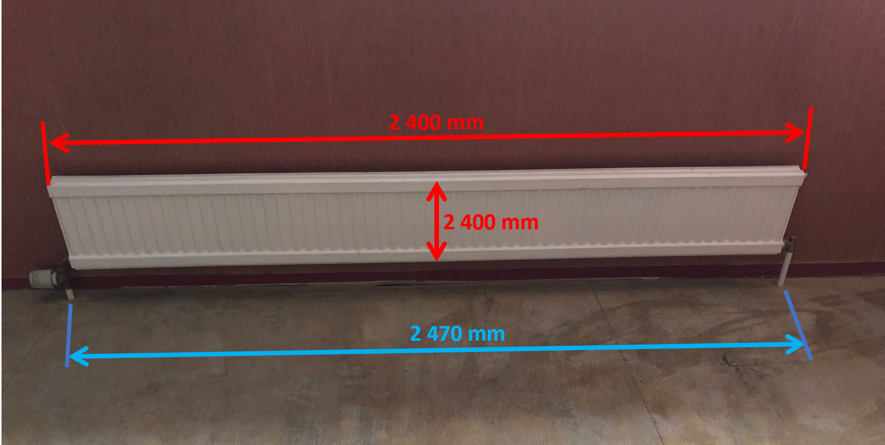 Ett av rummen jag renoverar är en fd. gillestuga och ska bli vår sons sovrum och är på 20 m2, har 3 st kopplade 2-glasfönster (980 mm*980 mm) som ska bytas ut. Radiatorn är en dubbelpanel som är 2 400 mm lång och är 300 mm hög.