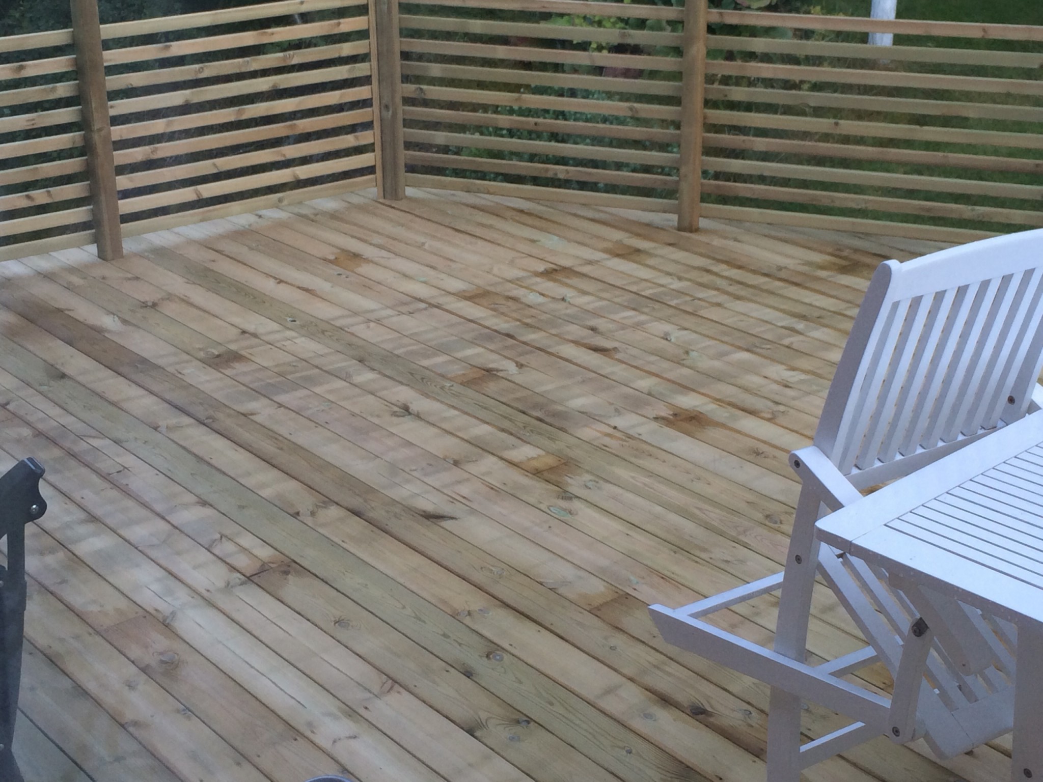 Hjälp! Lämnade ett gäng impregnerade trall på en alldeles nybyggd altan över midsommar - vilket resulterade i ränder som min fru inte är direkt imponerad över...