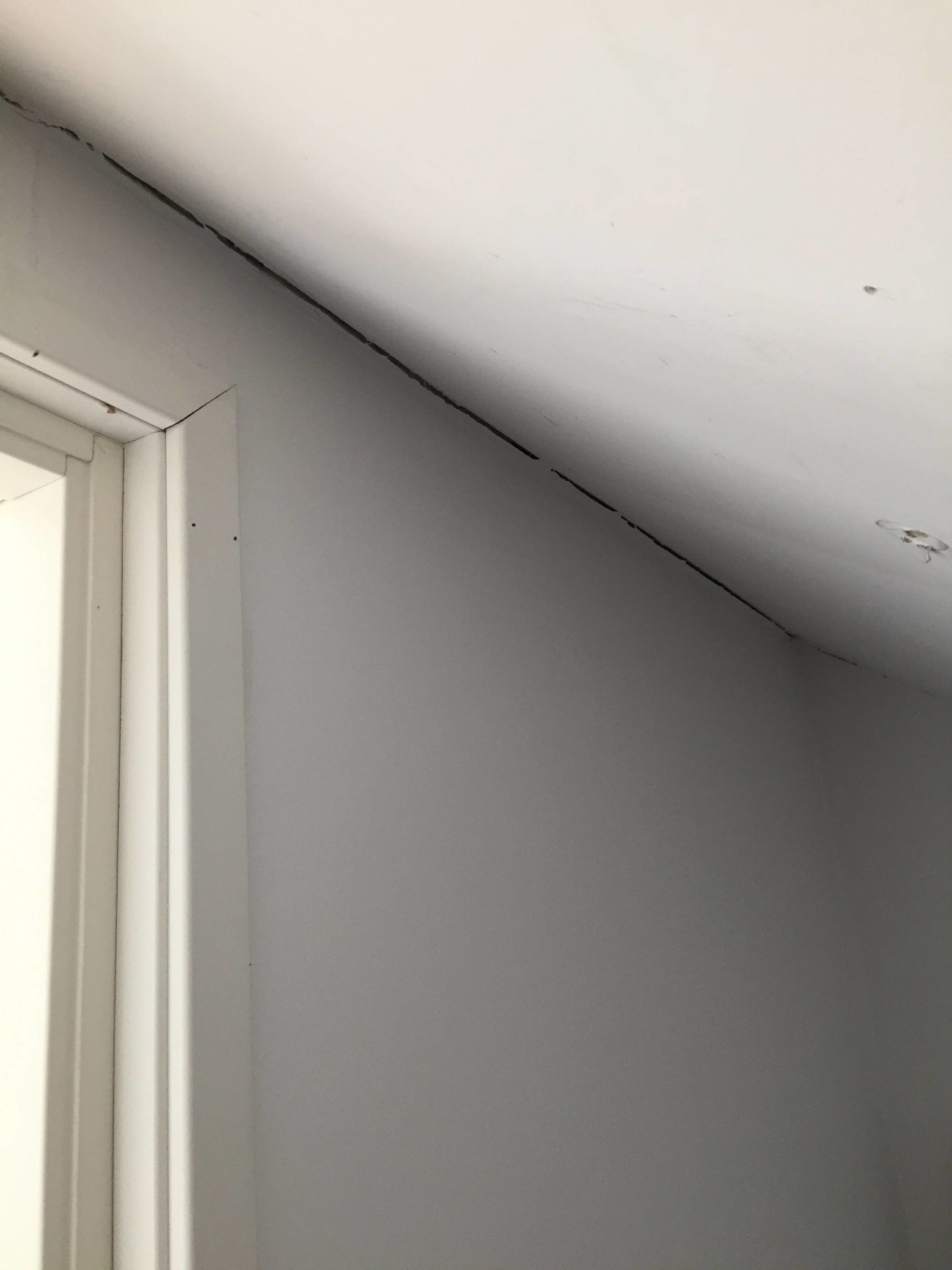 Köpte ett trähus i januari och nu 2-3 månader senare har det uppstått rejäla sprickor mellan tak och vägg i trappan upp till ovanvåningen. Även i rummet som gränsar mot trappan.