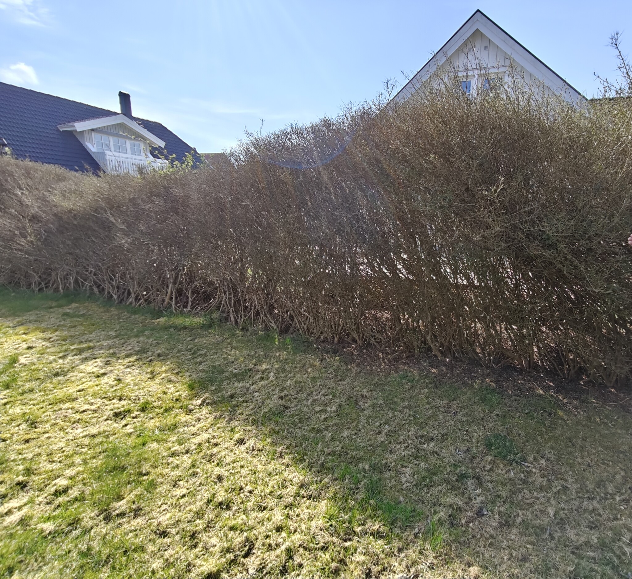 När jag hade ligusterhäck i utsatt läge körde jag med dubbel växtrad så att häcken blev bredare samt höll den lägre pga vind. Våt, tung snö borstades också bort för att rädda häcken.