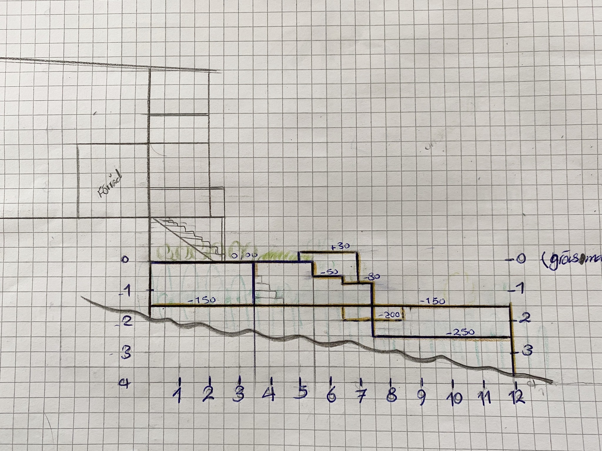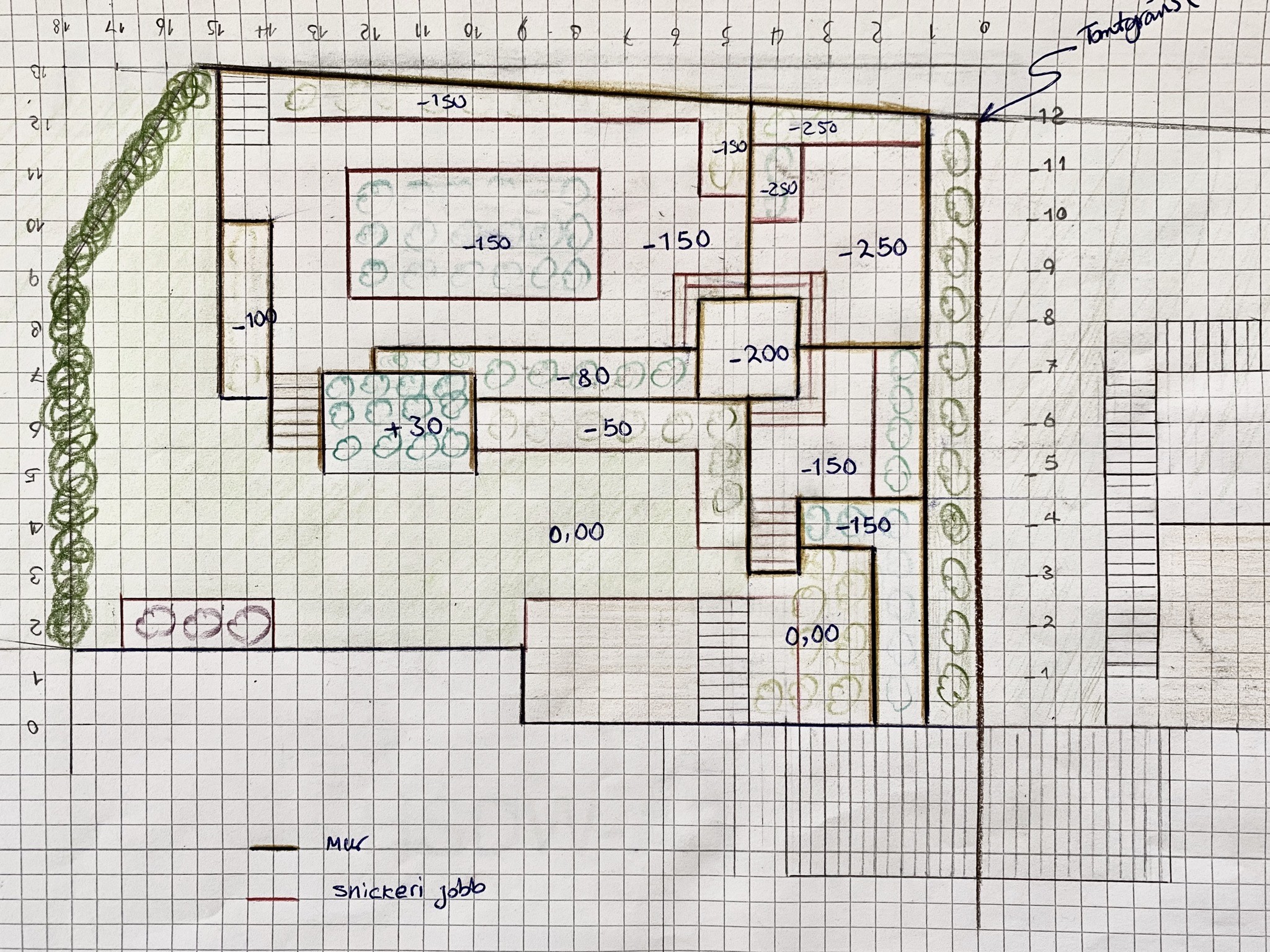 Vi skulle vilja bygga stödmur i olika nivåer( terrasseringar) på slänter som vi har vid vår tomtgräns. Det är ganska komplicerat design som kommer att kosta mycket! längden på murarna varierar mellan 2 till 10 meter. Max höjden kommer att vara ca 1,5 meter.