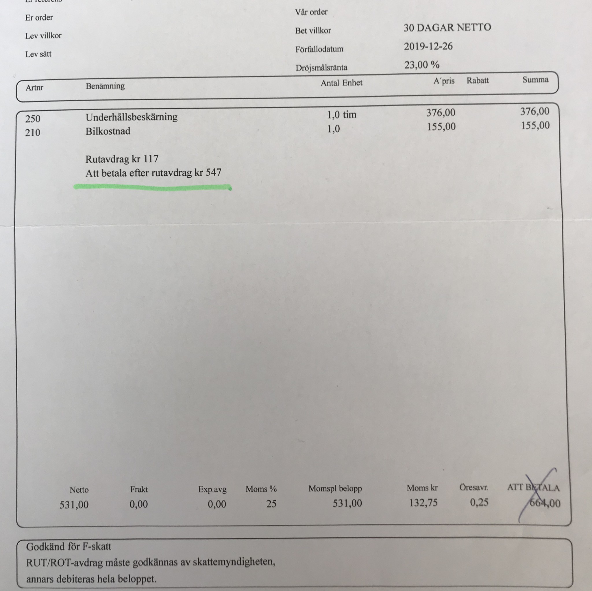 Förhoppningsvis är det ett dåligt exempel eftersom hanteringen av själva RUT-avdraget är gjort för hand vilket dessutom verkar ha resulterat i att det blivit fel.tttomten skrev: