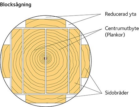 Skall man ha båtbord eller breda kilsågade bräder är man tvungen att ta dem ut mitten på stocken. Annars blir de ju för smala.