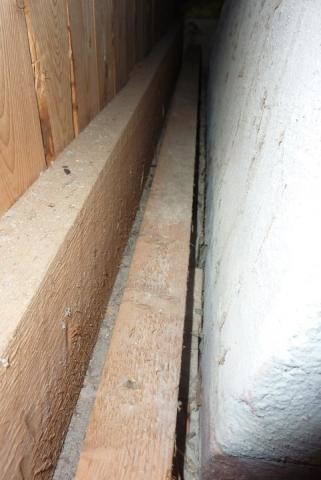 Det utrymme som regeln sitter i är mellan murstocken och en innervägg. Utrymmet är för smalt för att komma åt och sträcker sig hela murstockens längd (ca1.5m) I denna regel är det undertak (panel) fastspikat med dubbla spik. Jag har försökt att ta bort regeln med kofot utifrån det lilla jag kommer åt (ca 10cm som sticker ut utanför murstocken), men den sitter ganska bra på den delen jag inte kommer åt. Jag kan inte heller ta i för hårt för då spräcker jag panelen.