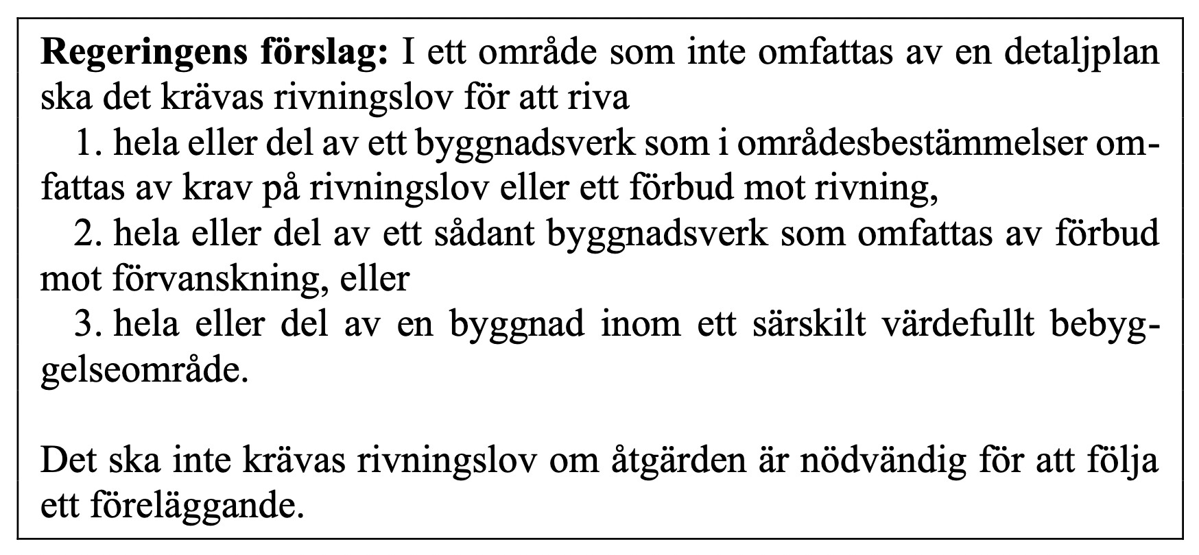 Utom detaljplan krävs det inte generellt rivningslov men om byggnaden är större än 50 kvm krävs en anmälan enligt PBF. Sen krävs rivningslov även utom plan för några andra scenarier. Fråb propositionen: