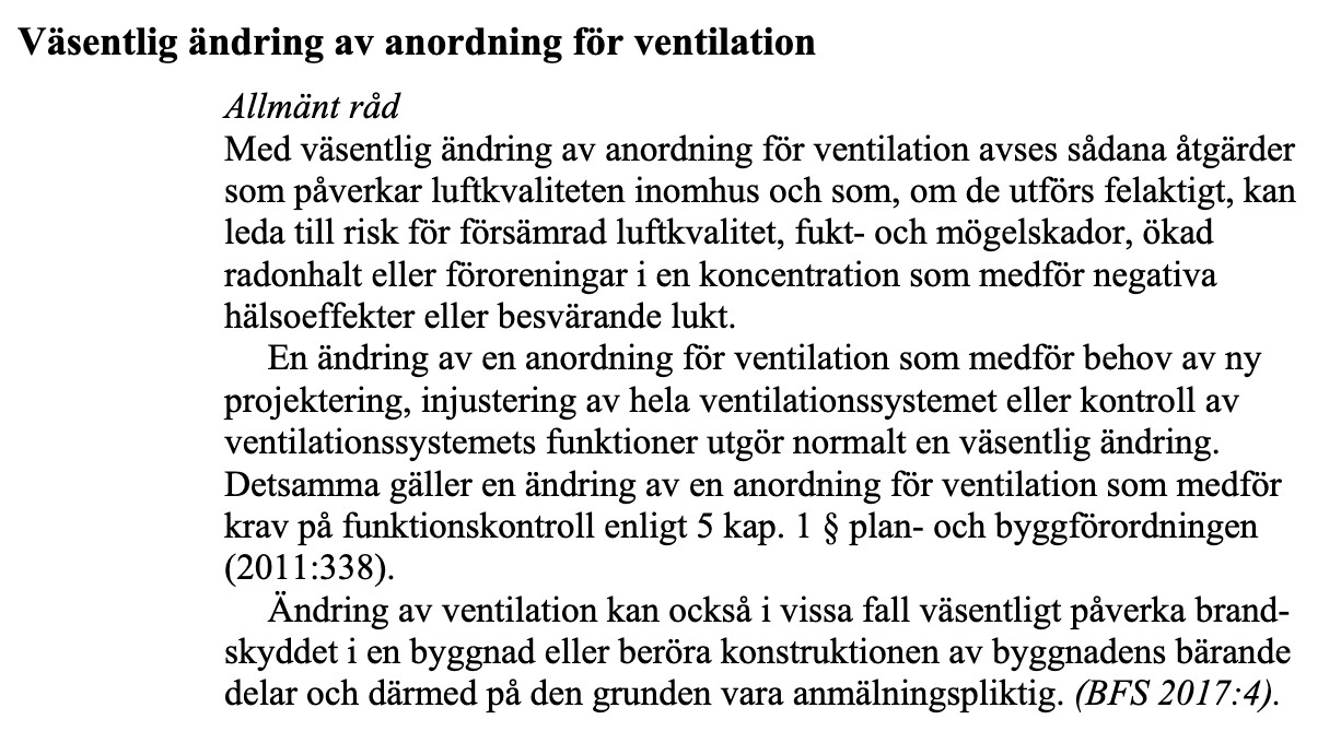 Så har jag inte uppfattat det. Boverkets allmänna råd motsäger det som du skriver:M MrDizzy skrev:Är du säker på just detta med ändring av befintlig FTX?