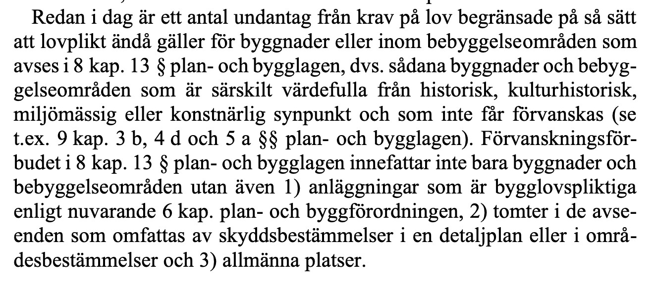 Gällande diskussionen om utökat lovkrav för att ens hus ligger inom ett skyddsvärt område enligt 8 kap. 13 § PBL: