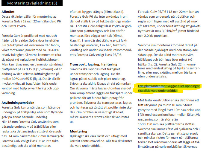 I änden däremot så är den första bjälken en del av den bärande golv konstruktionen som ska ta upp den verkliga vikten som golvet belastas med..