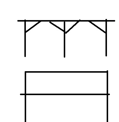 Snickra sen ihop mellan de stående reglarna så du fördelar ut vikten krafterna med snedsträvor så varje sektion i princip kan så och ta sin last själv och bygg sen ihop med horisontella reglar av lämplig dimension.
