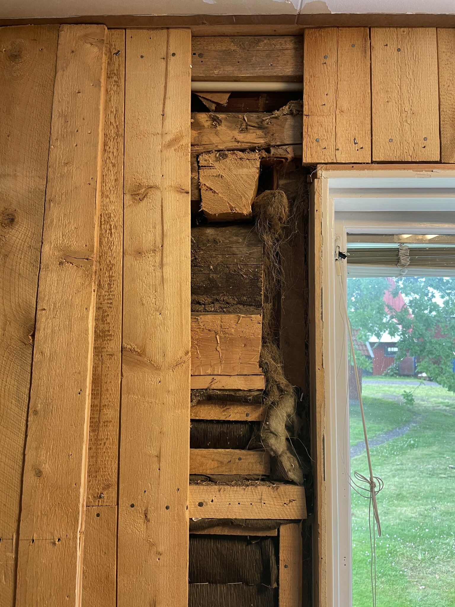 I ytterväggarna ligger fortfarande stockar kvar från det gamla huset byggt slutet 1800.