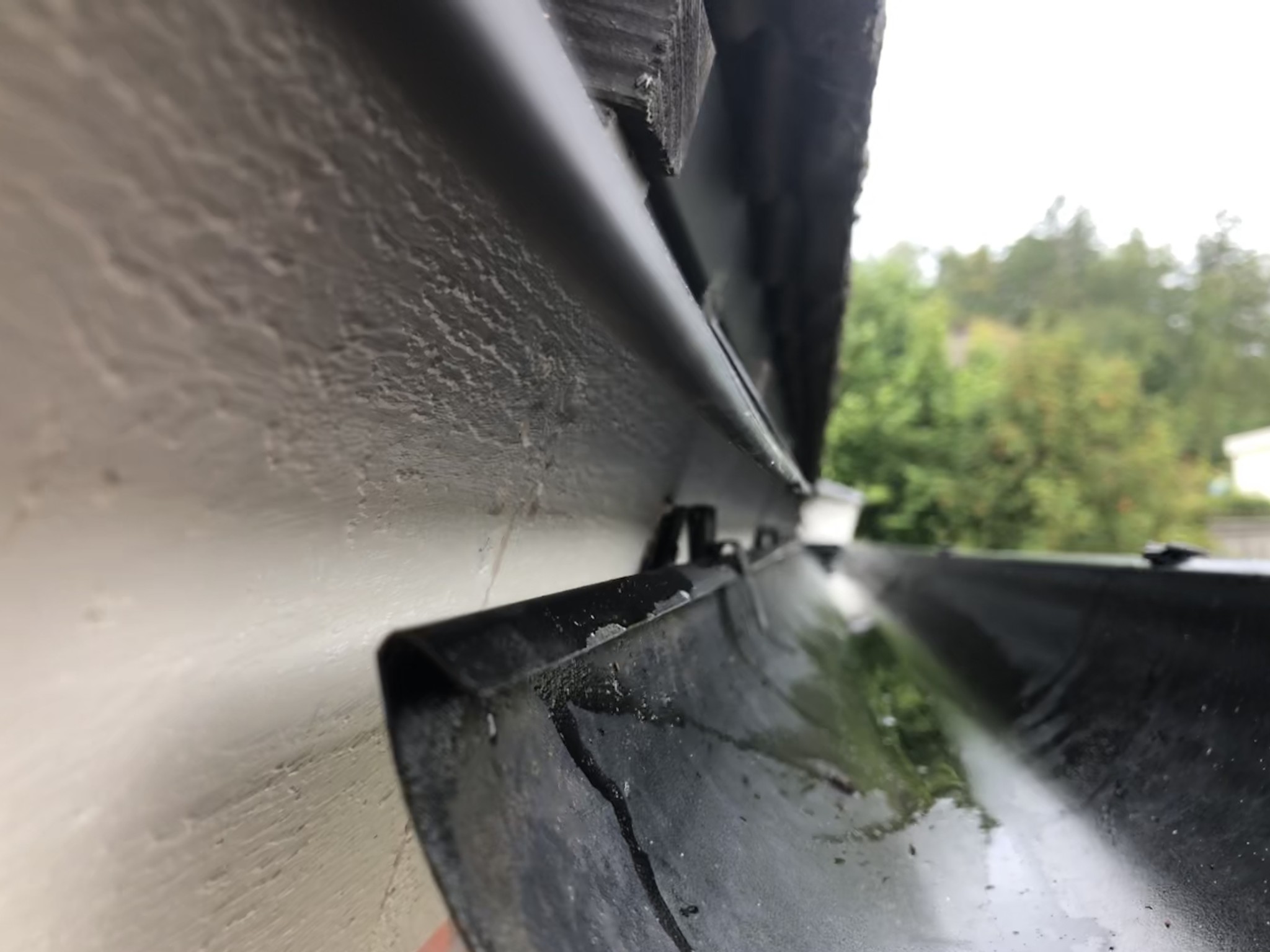 Hängrännan bör absolut inte vara som på sista bilden. Vid översvämning kommer vattnet att rinna ur rännan in mot fasaden, vilket skapar skada på fasaden över tid (eller åtminstone på takfoten). Se till att hängrännan är vinklad ut från fasaden (ifall det rinner över vatten).