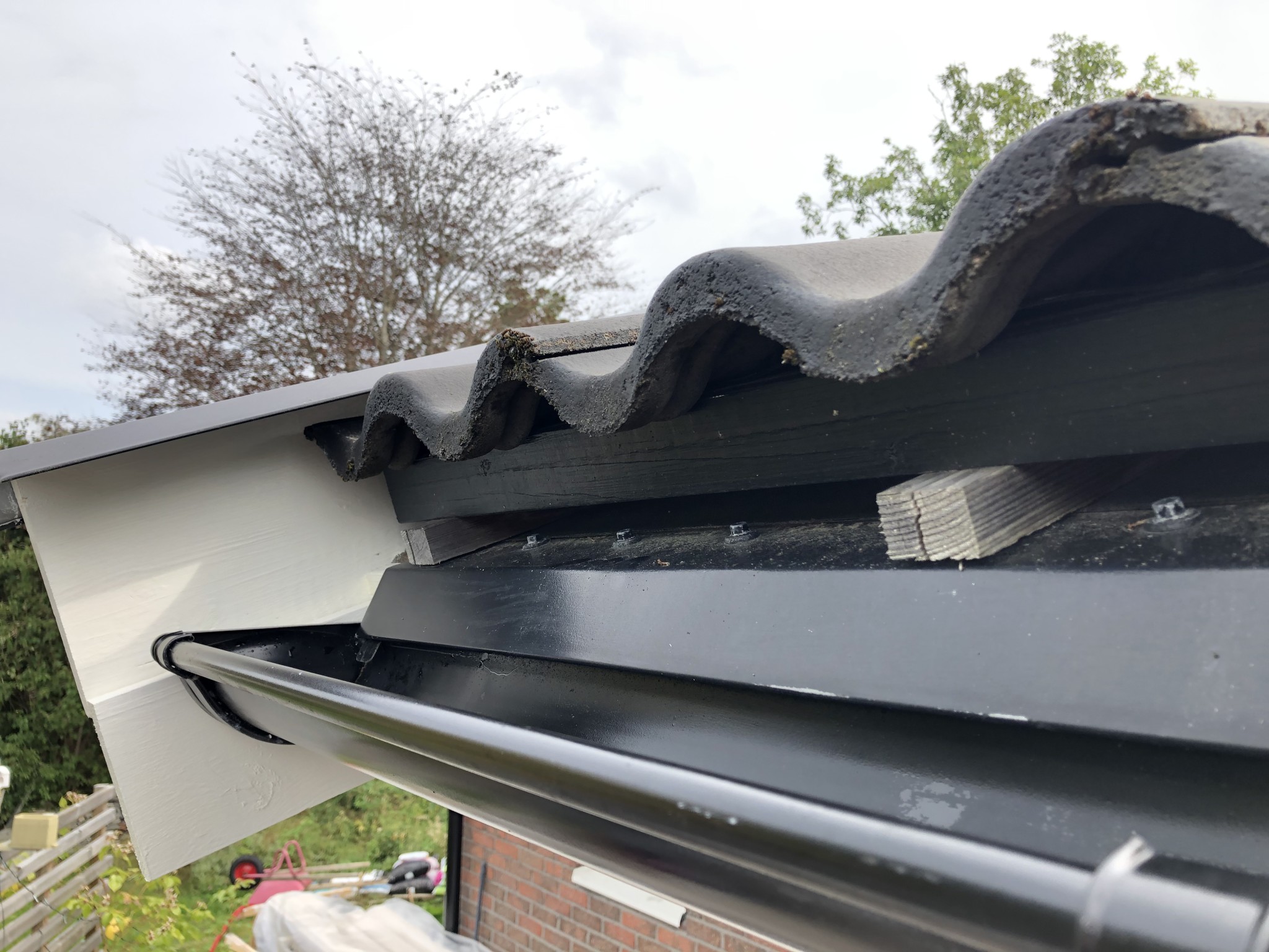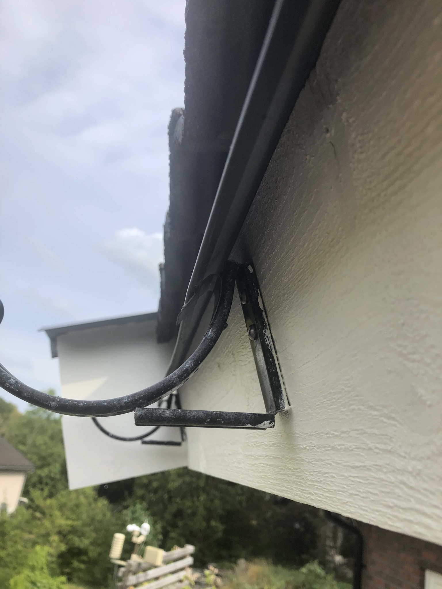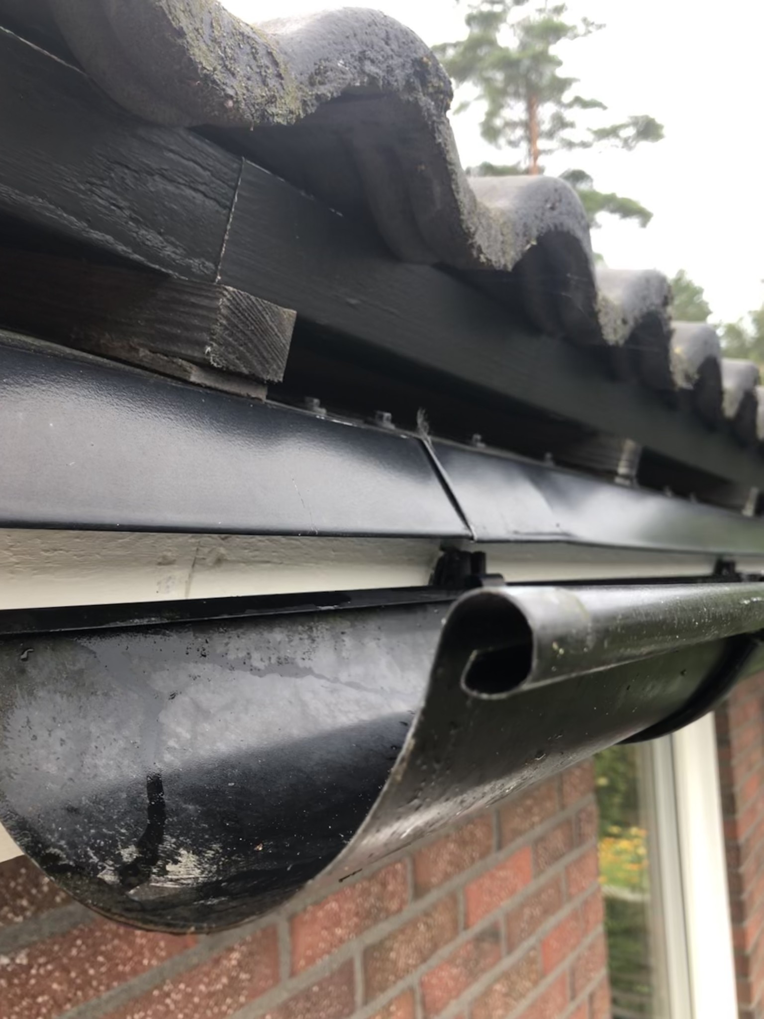 Jag har tryckt upp mina rännkrokar så långt jag kunnat (och samtidigt kunna skruva i skruvarna) och jär är några bilder hur det ser ut i den ända där rännan är högst.