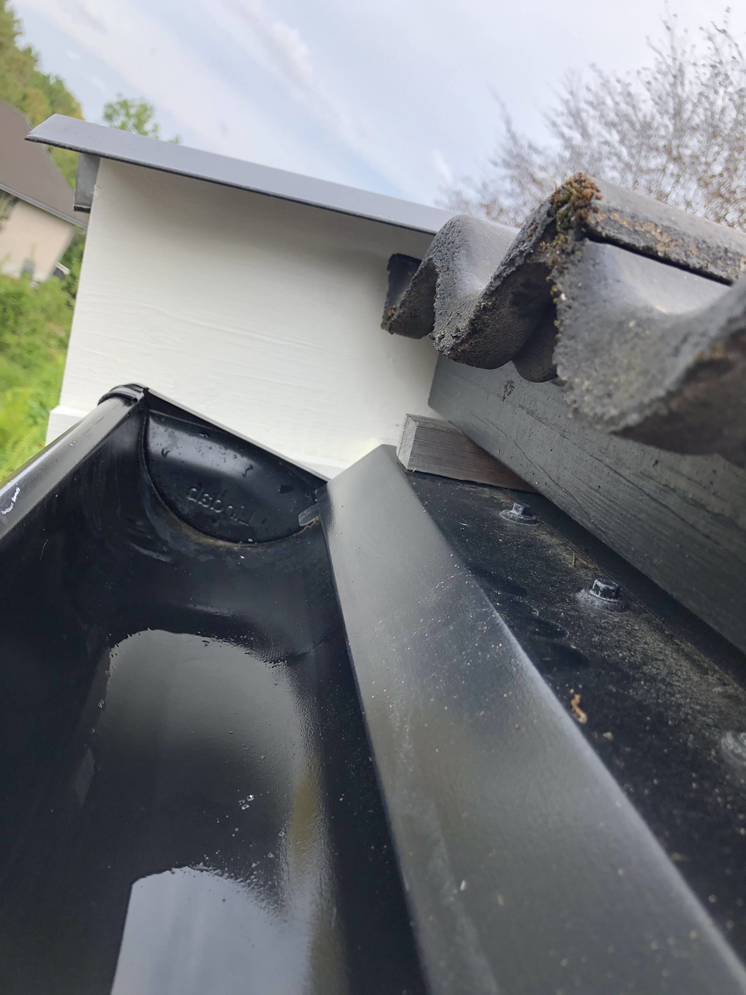 tankar jag haft är att limma nån remsa av takpapp eller plåt på undersidan fotplåten så att det går ner längre i rännan, men jag vet inte... Kanske kan he bekymmer när det blir snö och is i rännorna?