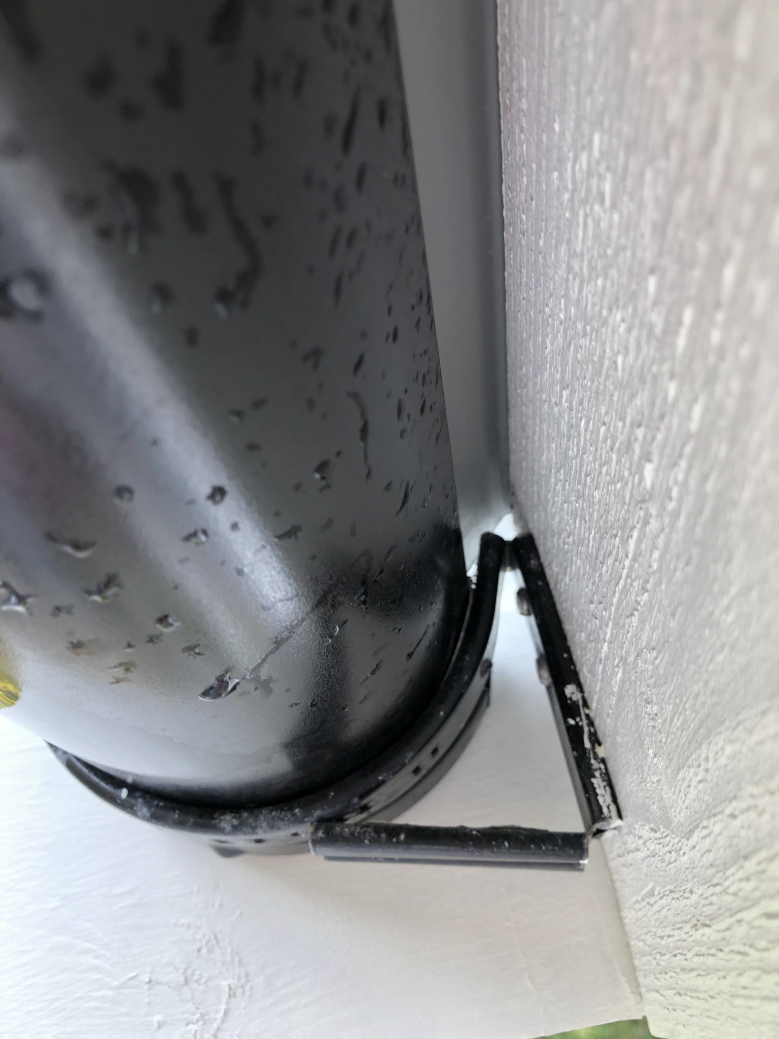 Problemet är att det är ett stort mellanrum mellan fotplåten och rännans bakkant så när det regnar mer än lite grann så skvätter det vatten uppmellan plåt och rännoR vilket leder till smutsig fotbräda.