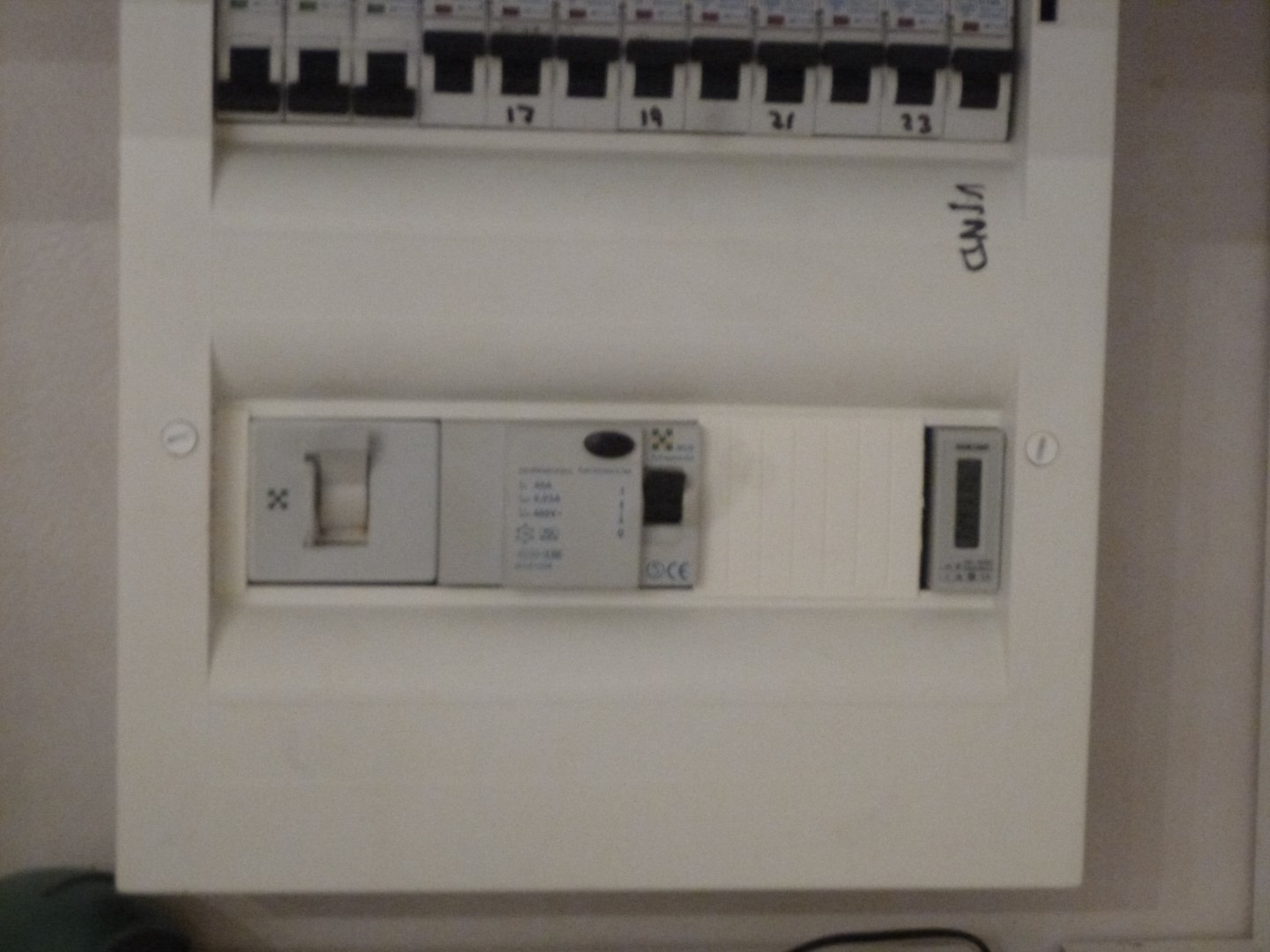 Bilden i exemplet ovan är bra. Mätaren sitter för sig själv i hörnet. Dit behöver inte fasskenan gå. Bara dra en kabel från brytaren till mätaren och märk upp ordentligt i gruppförteckningen.