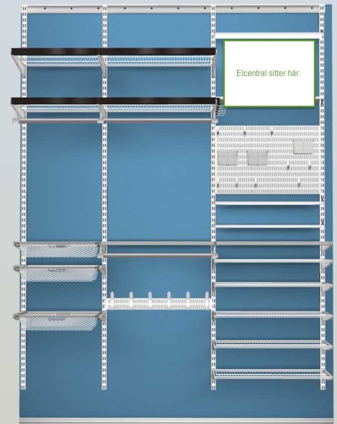 BTW... ny kapsling går inte... har ingen plats runtomkring. Har en vägg till höger precis och satt upp elfa hela vägen ner och till vänster.