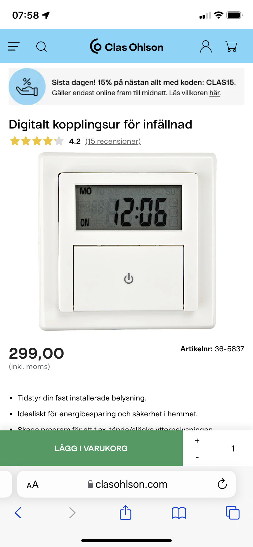 jag hänger på här och frågar, finns det någon digital timer att ersätta knappen för? Har ngt med detta då jag trycker på knappen klickar det ett relä under huset som styr ytterbelysningen.S sverre skrev: