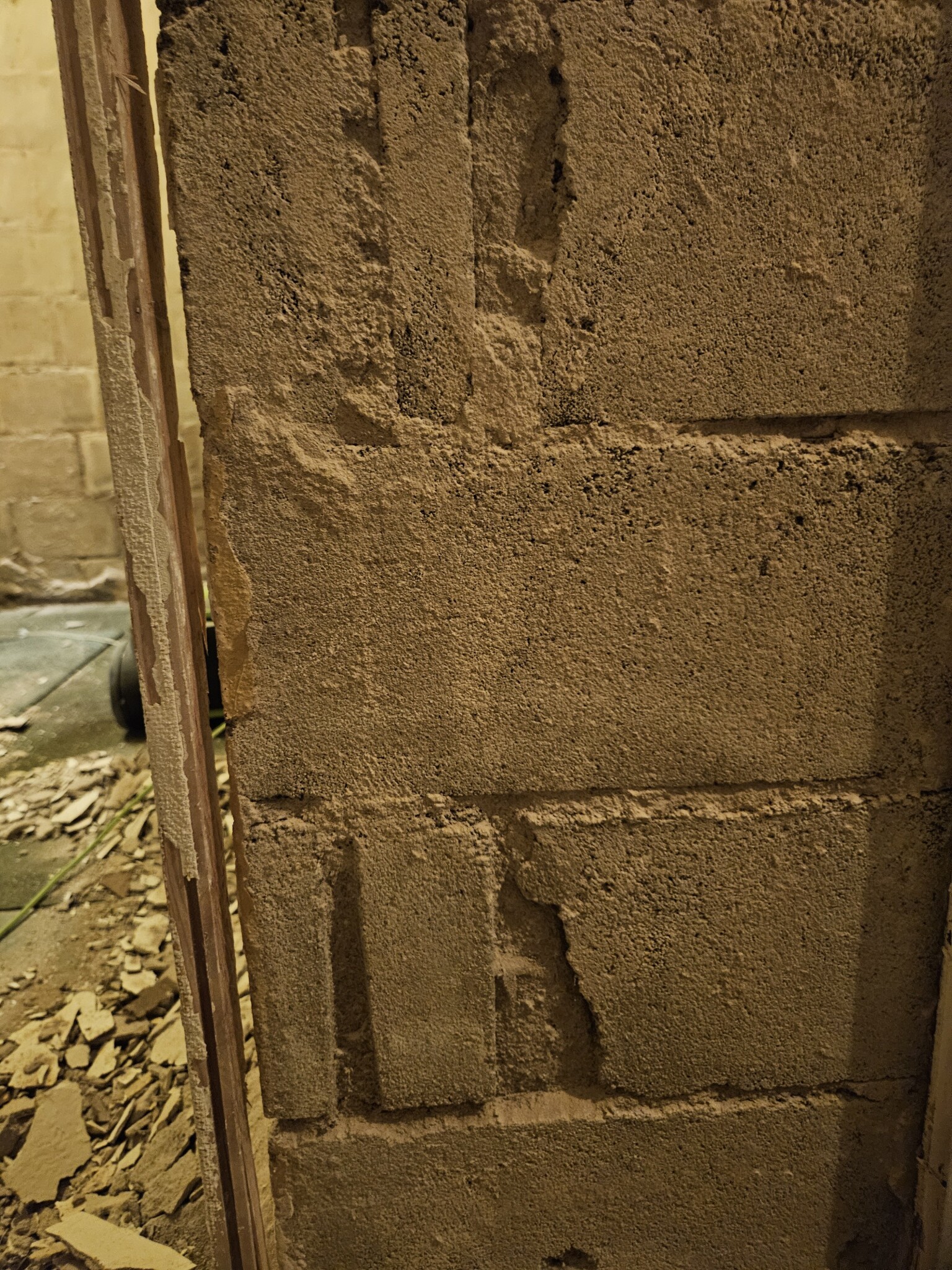 Nu har jag, med hammare och stämjärn, rivit ner gammal tapet, trä, och puts (gips??) I källaren.