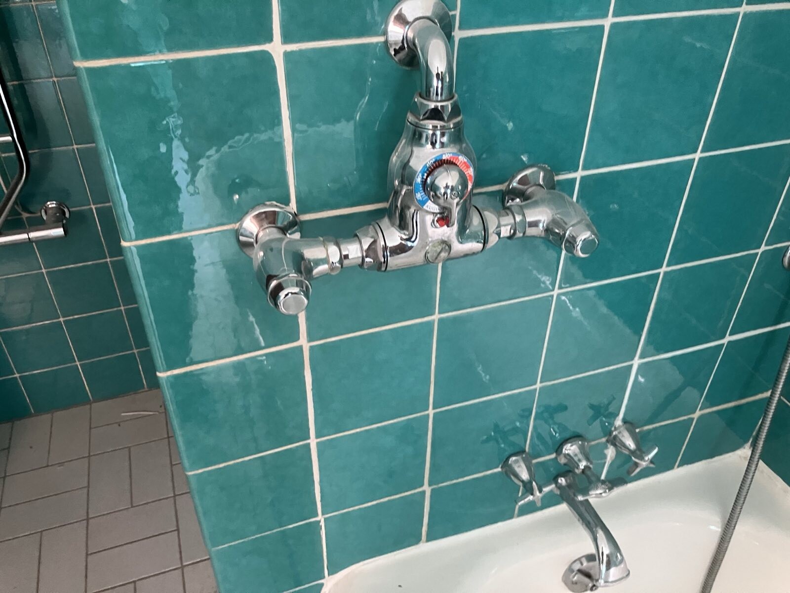 Det som sitter ovanför badkarsblandaren, det med temp-skala, vad betjänar det? Badkaret och duschen verkar ju ha egna blandningsmöjligheter.
