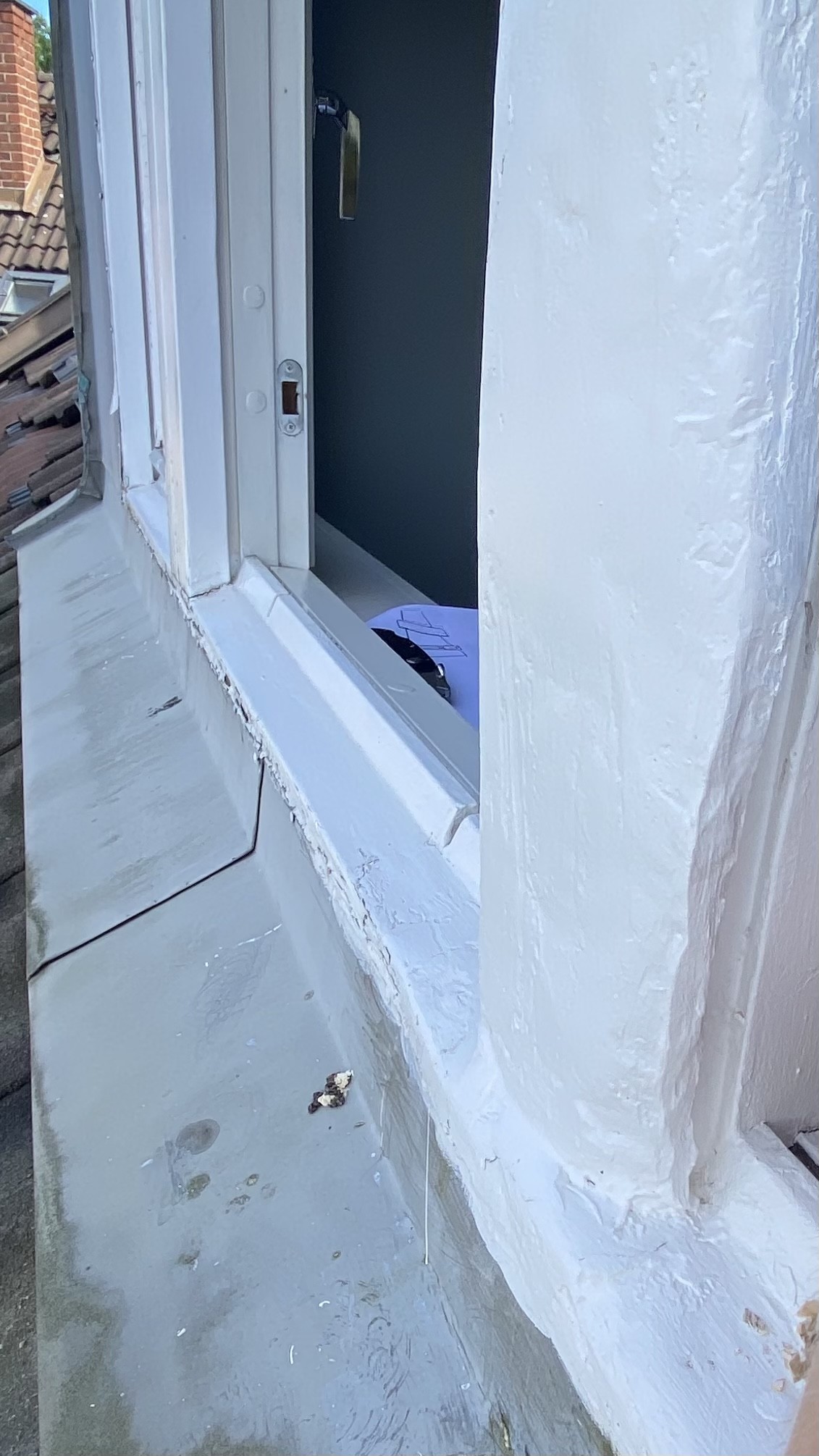 Därefter undrar jag om det inte borde sitta ett fönsterbleck ovanpå detta trät?