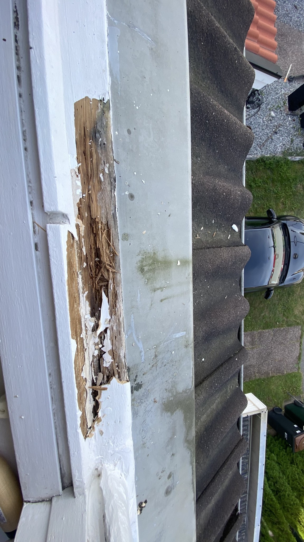 efter lite hack med en syl, där färgen enkelt lossna konstaterades en hel del ruttet trä som vittrar sönder bara man rör vid det.