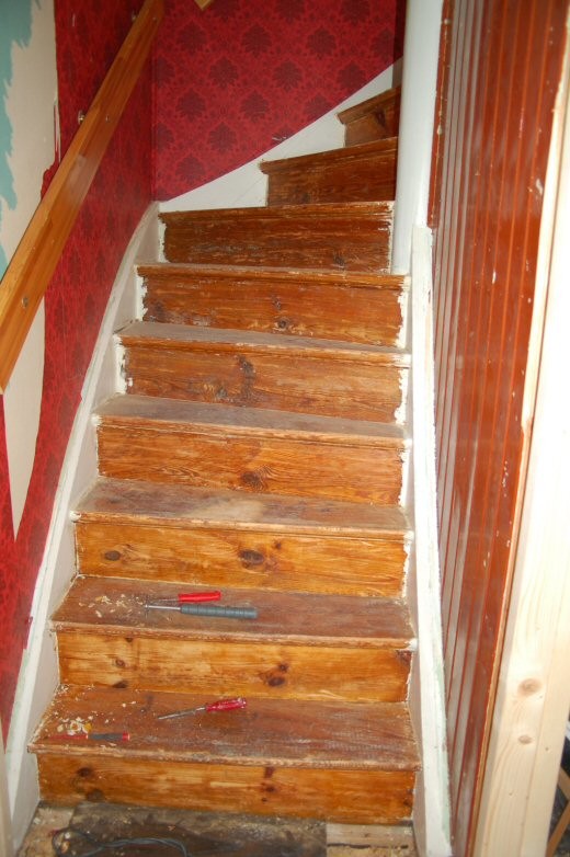 Nu har jag äntligen kommit en liten bit på trappan. Tänkte visa lite bilder på hur det har gått. Här är den som den såg ut när vi köpte huset. Irk