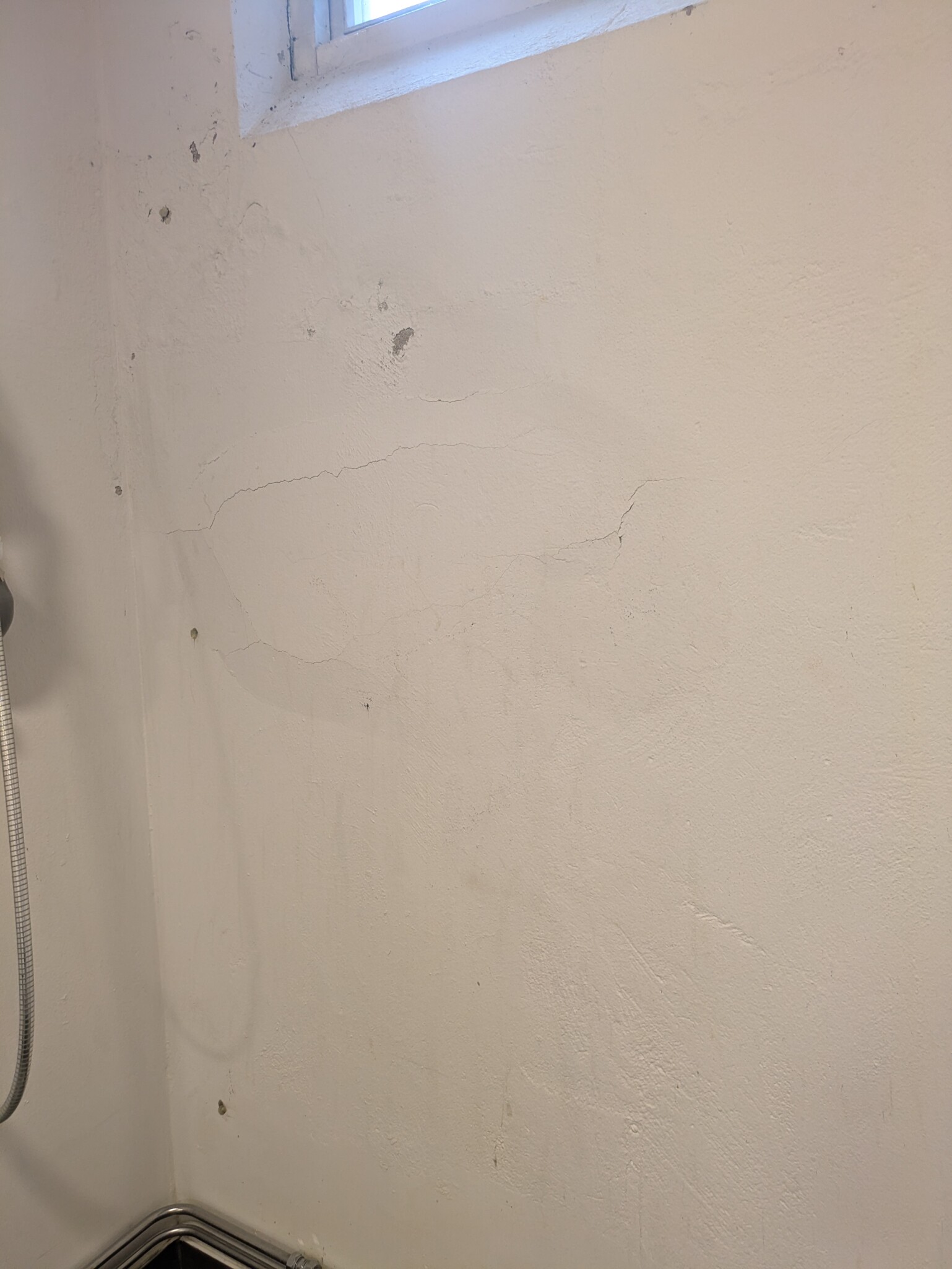 Har precis flyttat in i ett hus byggt -73 där vi har källare/sutteräng. Putsen på källarväggen där dusch står släpper puts och "bultar" ut.