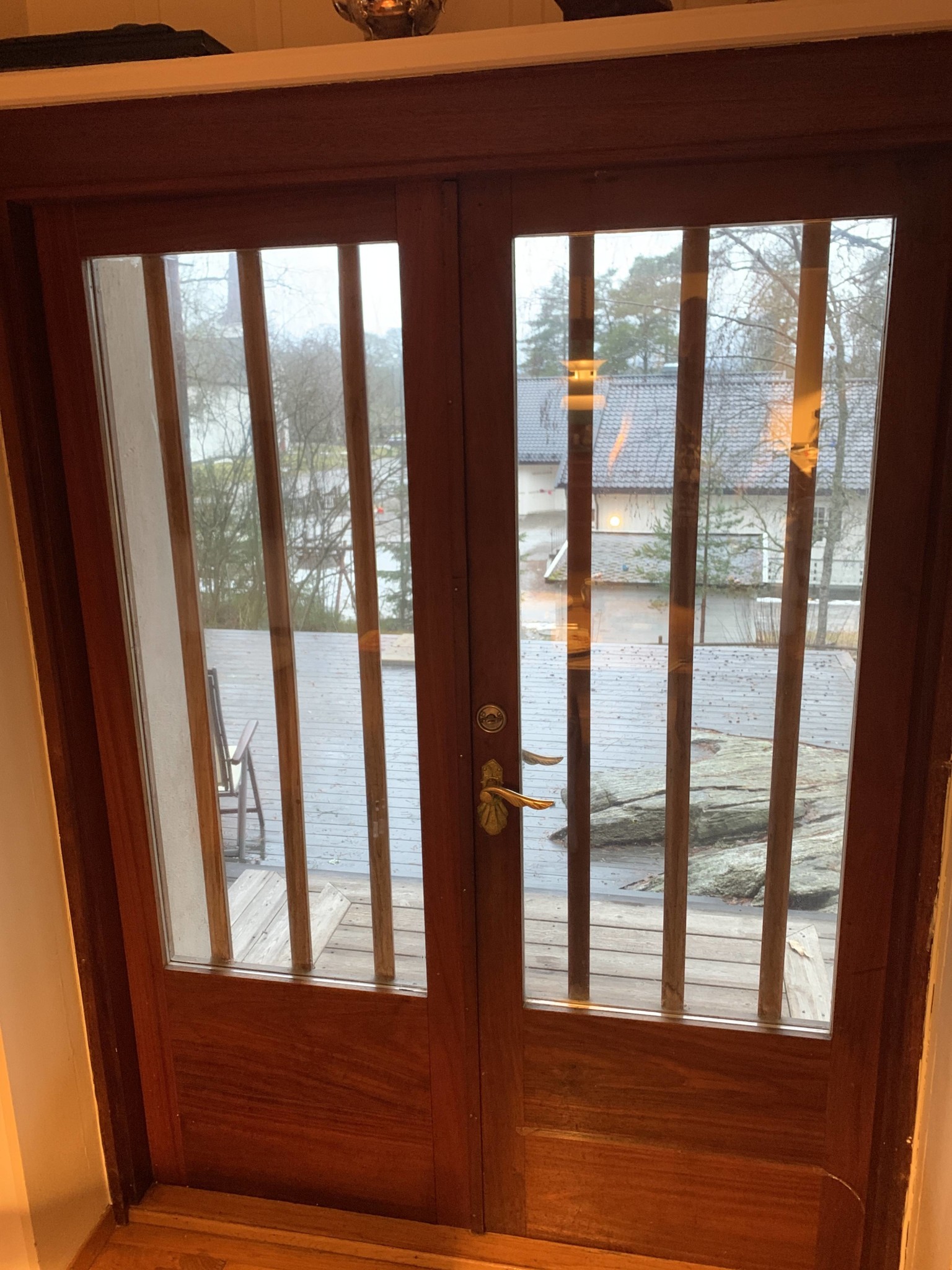 Ett annat problem är oxå i den horisontala skarven i dörrbladen ca 30cm upp. Där är det faktiskt en glipa på nästan 1 mm på båda sidor. (Tätad med genomskinlig tejp på insidan just nu)