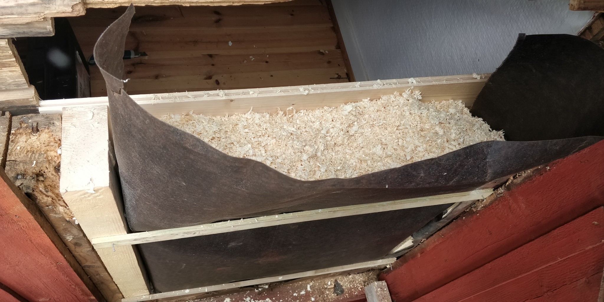 Fyllt på med nytt kutterspån och lagt yttre lagret med råspont.