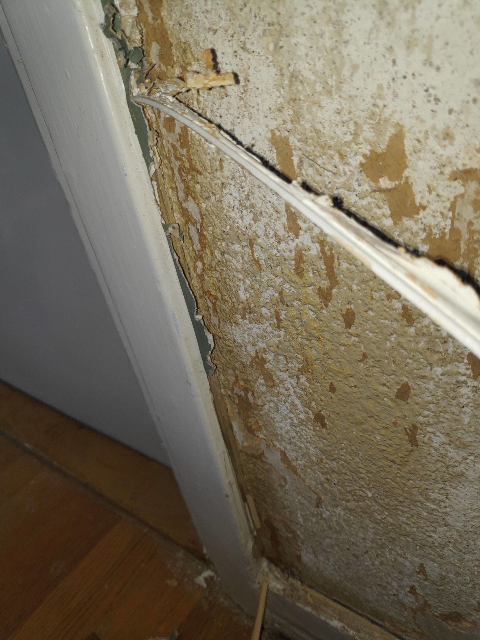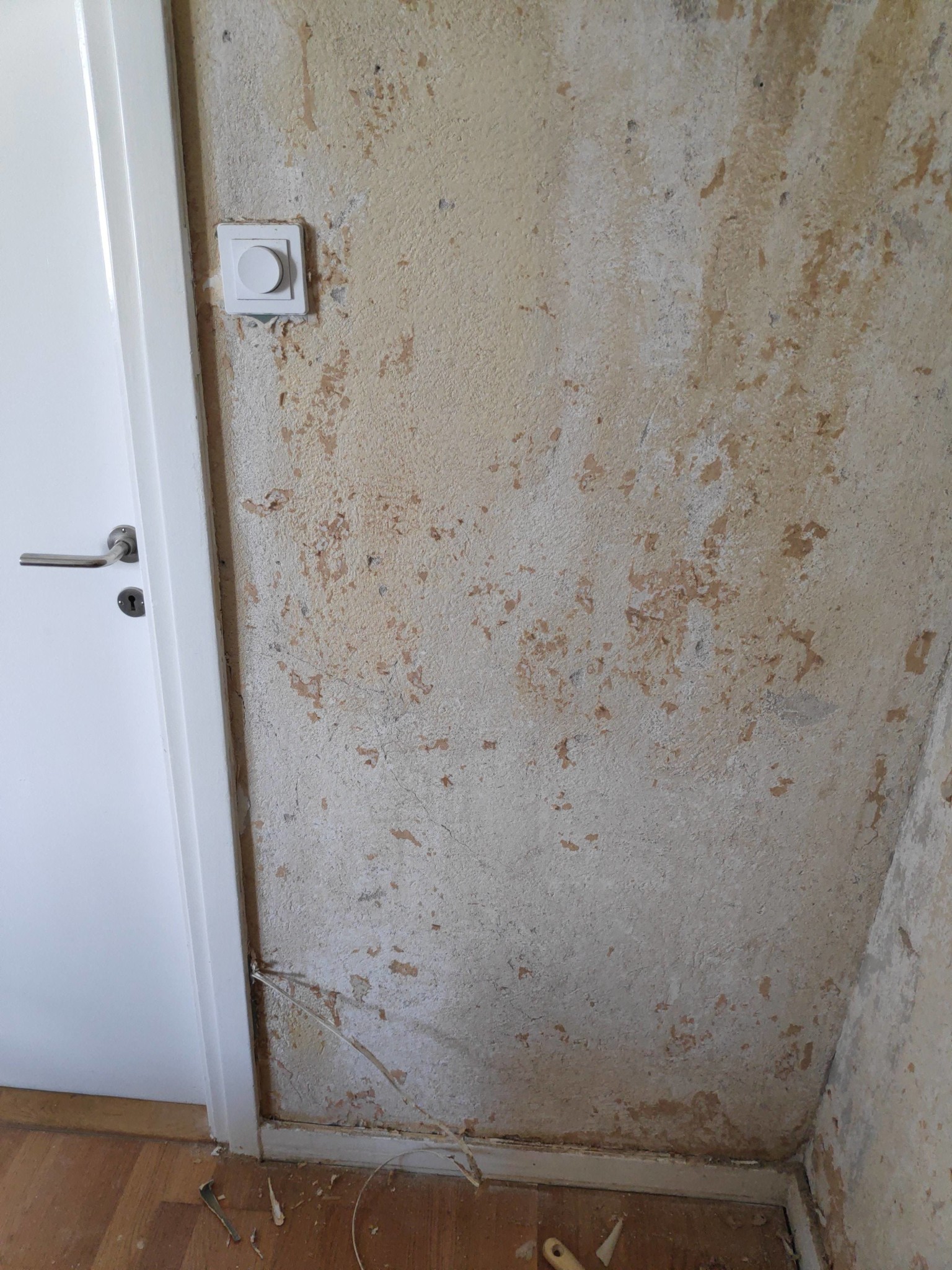 Vi har köpt en lägenhet från 40-talet och håller på med vår första renoveringsprojekt, att snygga till sovrummet. Vi har börjat med att skrapa bort gammal tapet, som visade sig vara ca 4-5 lager tapet med lite färg och spackel emellan, nästan 5 mm tjockt. Nu har vi nakna väggar av vad jag gissar är någon sorts lättbetong (bild 1). Det finns en hel del djupa hål & sprickor i den (bild 2). Taket har vi inte rört mycket. Golvet är minst två lager parkett, det nyare sitter ovanpå den gamla med smyglist (bild 3 och 4 som från vardagsrummet, där endast den gamla parketten finns). Den gamla listen & dörrfodret är rätt skadat & slitet och det finns någon slags gummi tätningslist ovanpå (bild 5). Jag ber om ursäkt för min amatör beskrivning & okunskap. Jag skulle mycket uppskatta tips & råd ang våra renoveringsplaner vilket vi satt ihop ffa från att läsa denna forum: