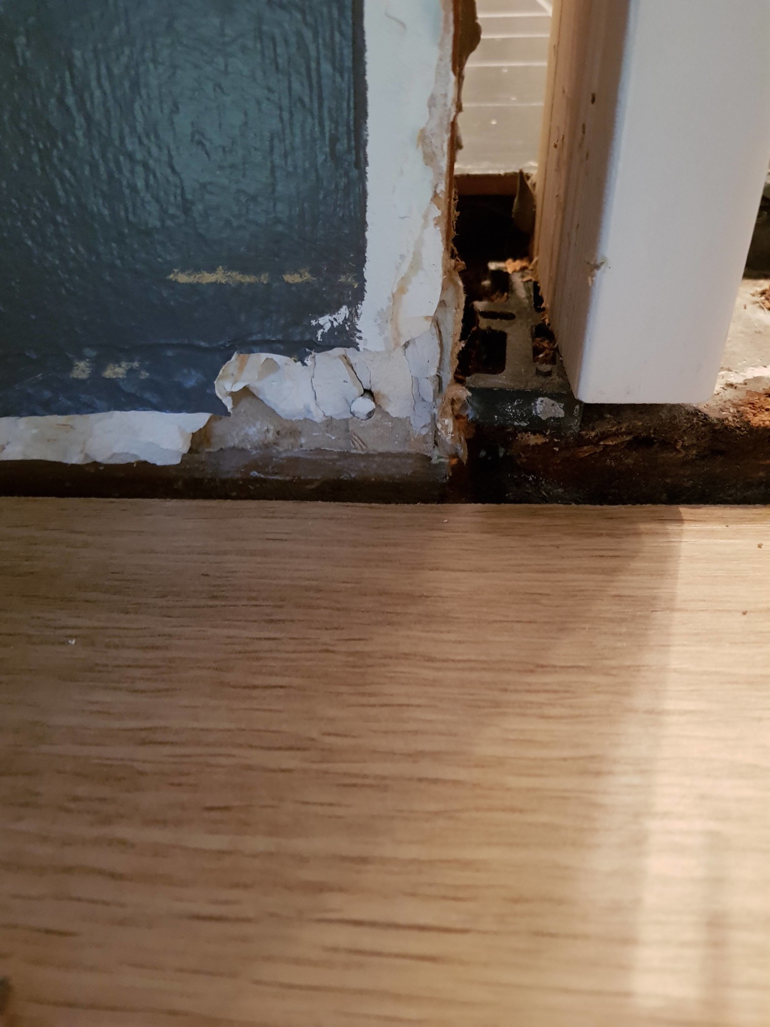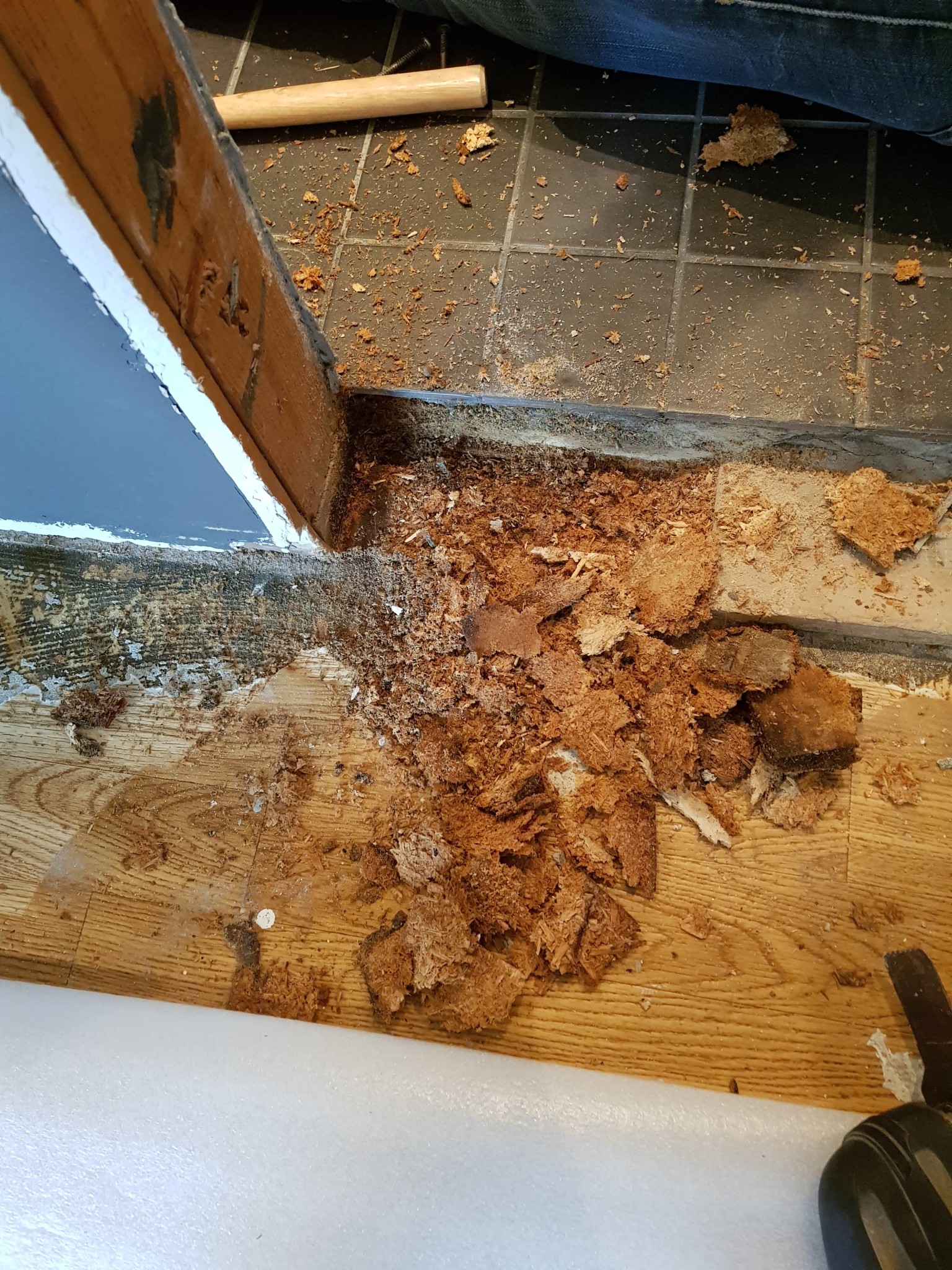 En klar vattenskada du har grottat fram , spånskivan under har svällt måste åtgärdas ,