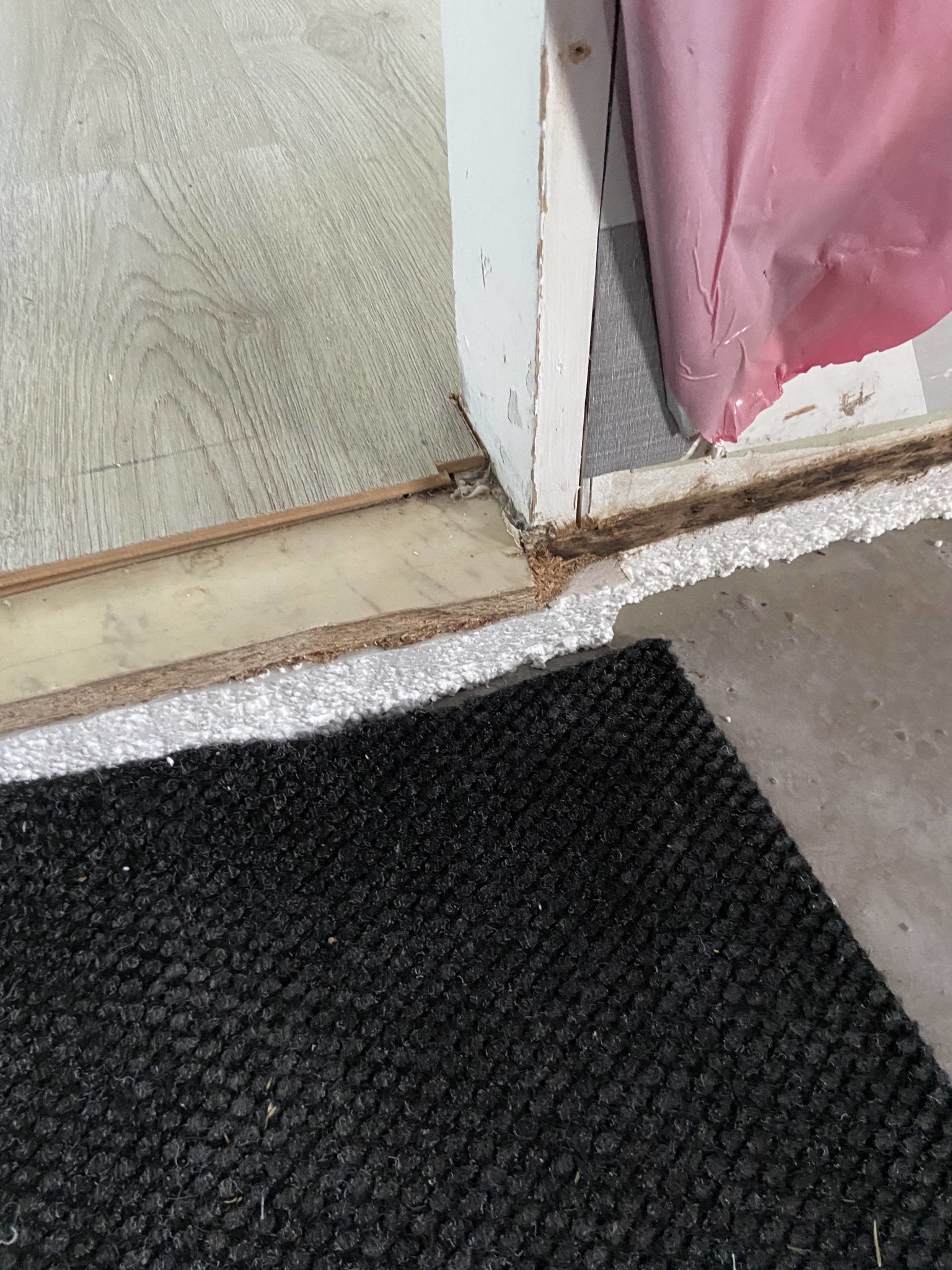 Men på delen där jag rivit så har jag varit tvungen att kapa cellplasten och golvspånskivorna jäms med väggen till köket.