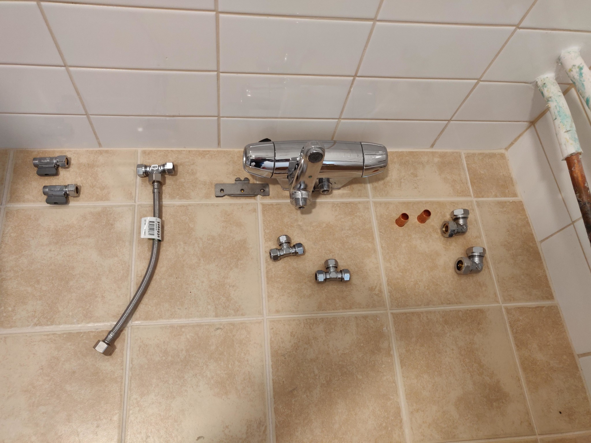 I samma stund som jag skriver detta kommer jag på att jag missade två nipplar för själva duschblandaren men dom får jag väl i värsta fall köpa på Biltema då!