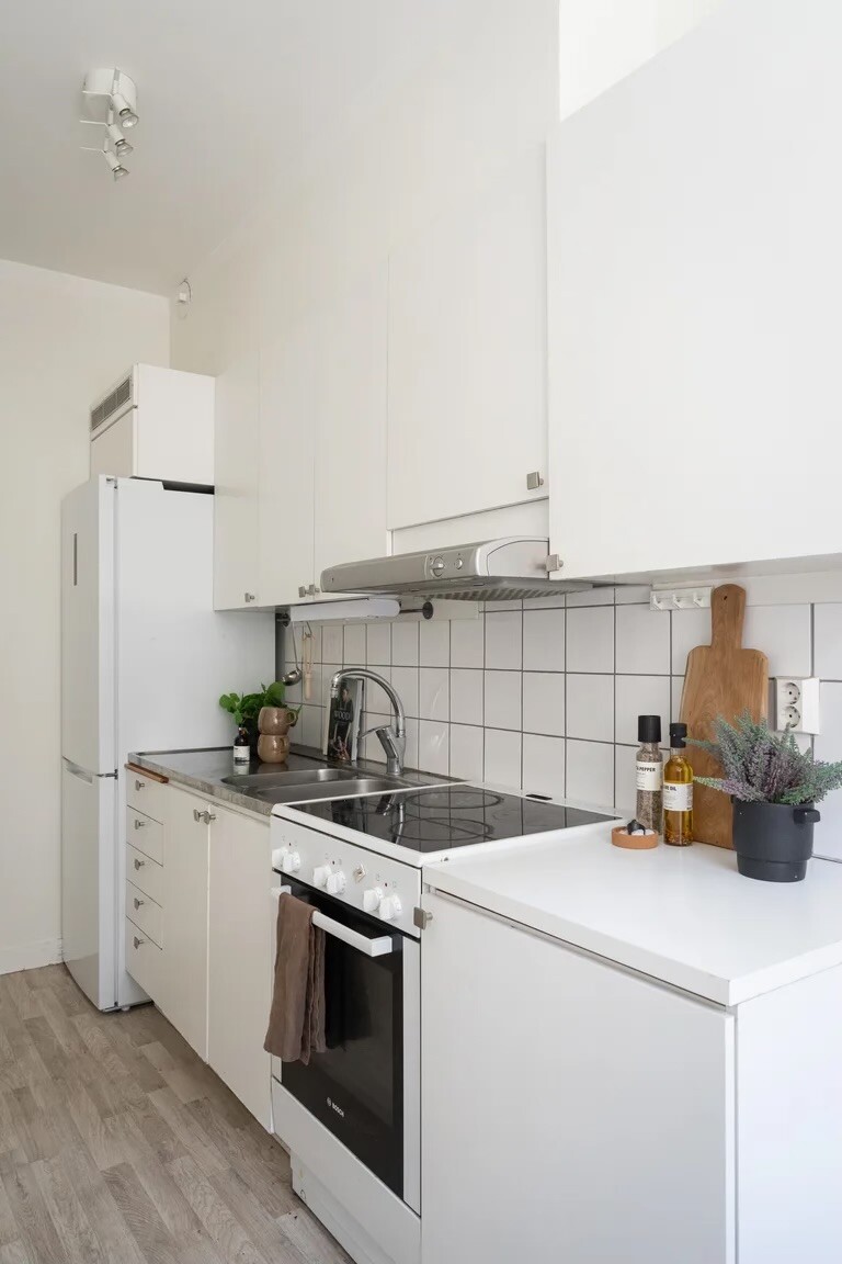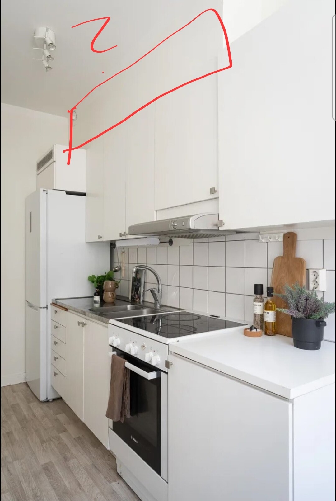 Tanken är att vi gör om planlösningen av köket och att hällen och fläkten istället kommer närmare väggen